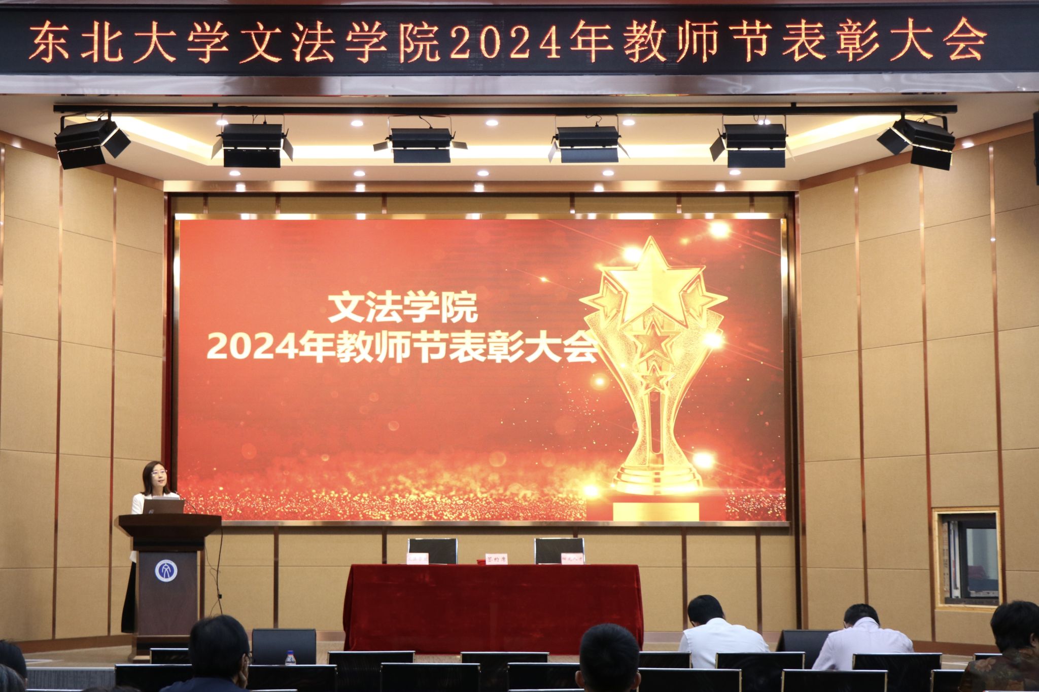 9月10日,文法学院于浑南校区文管学馆B230室召开2024年教师节表彰大会,大力弘扬教育家精神,加快建设教育强国。文法学院全体教职工出席会议。会议由副院长满小欧主持。