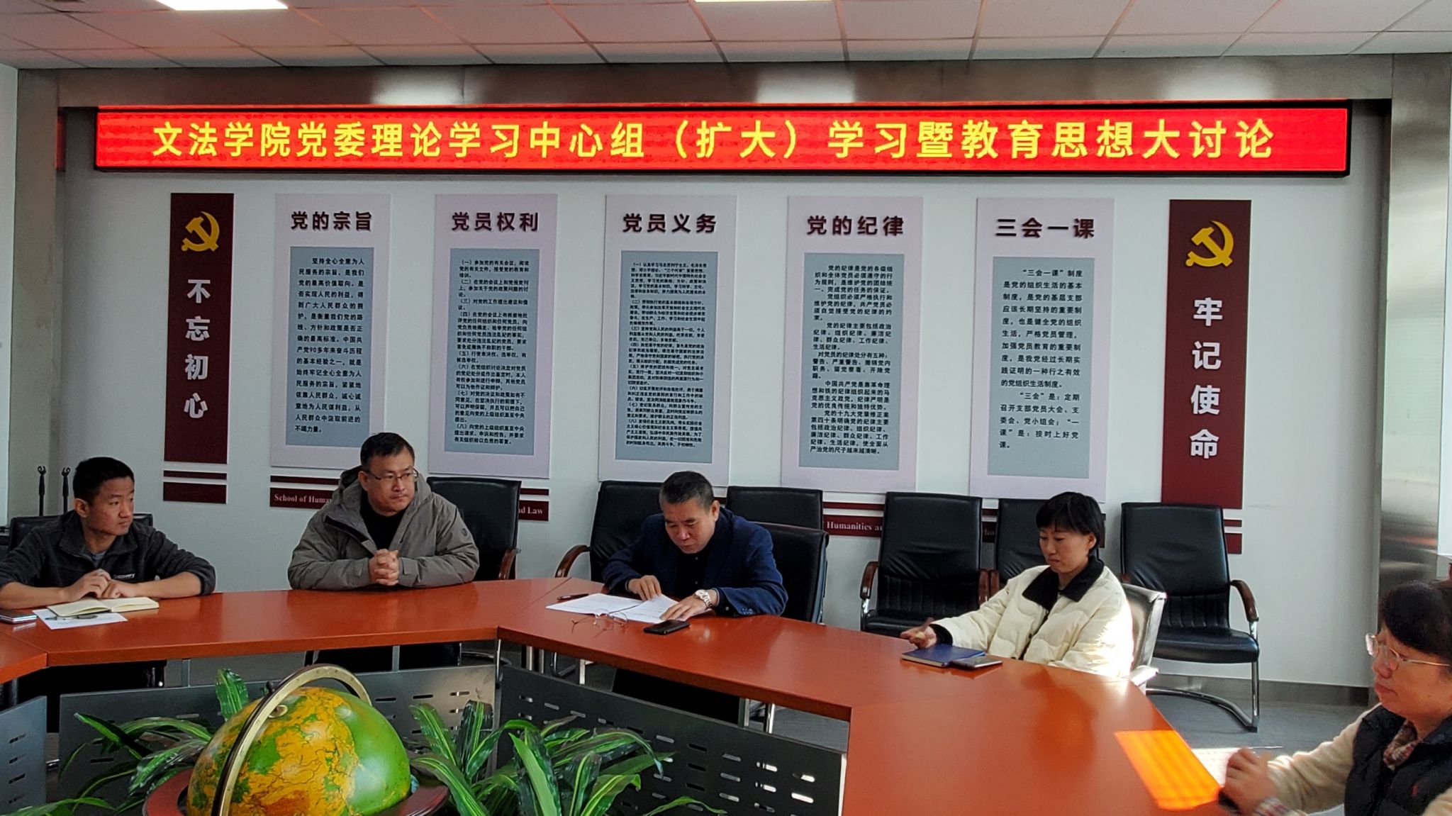 10月23日上午,文法学院党委在浑南校区文管学馆A202会议室组织召开党委理论学习中心组(扩大)学习暨教育思想大讨论。学院党委委员、教工党支部书记、机关科室主任等参加座谈会。会议由学院党委书记隋永强主持。