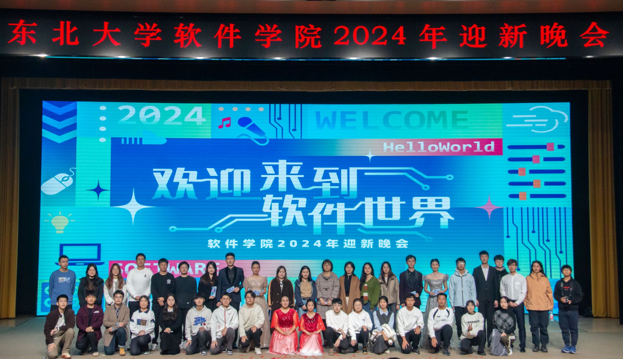 10月23日,软件学院2024年“欢迎来到软件世界” 迎新晚会在浑南校区大学生活动中心多功能厅举行。软件学院党委书记滕超,副院长谭振华、徐剑、梁振,党委副书记、副院长(兼)王慧琦,软件学院学生工作办公室全体教师及2024级全体新生参加晚会。