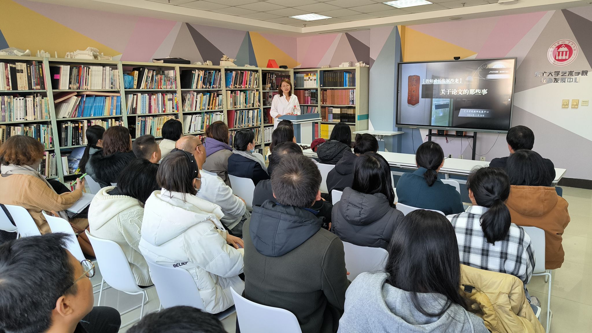 11月20日下午,艺术学院在主楼802室教师发展中心组织开展教师成长发展沙龙活动,邀请艺术学理论系周荣教授作题为“关于论文的那些事”专题交流,学院全体专任教师参加,活动由学院党委书记安立鸿主持。
