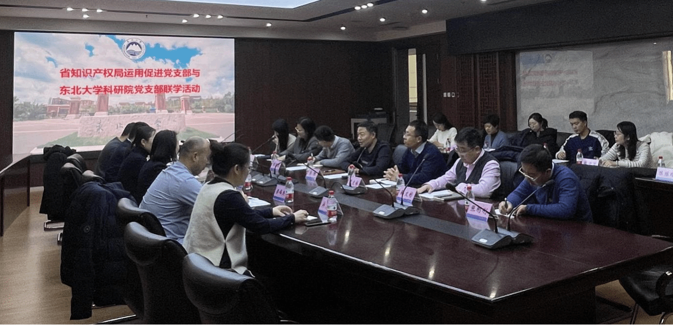 12月3日下午,辽宁省知识产权局运用促进党支部与东北大学科研院党支部在汉卿会堂308室开展联学活动,深入学习习近平总书记关于知识产权的系列重要论述,交流学习党的二十届三中全会精神体会,探讨知识产权管理和科技成果转化工作的创新发展。