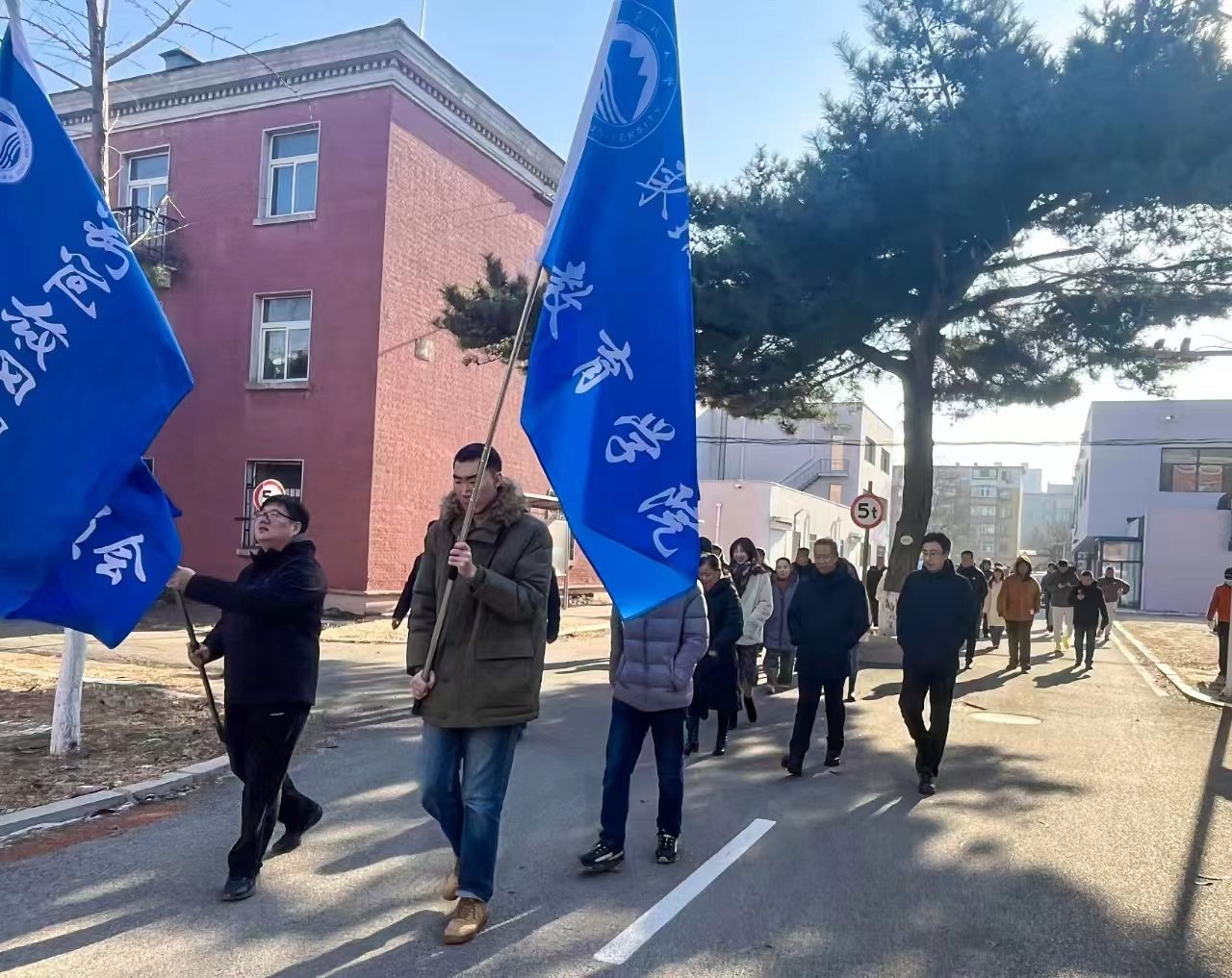 沈河校区健步行活动开幕式在办公楼南广场举行。继续教育学院副院长、分工会主席李久存主持开幕式并致开幕词。开幕式上各部门教职员工集体合唱了《东北大学校歌》。健步行活动从沈河校区食堂出发,经学生五舍、学生六舍、教学讲堂、花坛、科学宫、篮球场、理化楼、体育馆等地,全程约2公里。中途设置“鹰之韵”“黄金家园”两处打卡地,相关工作人员在两处打卡地为活动参与教师进行文化宣传并发放健步行活动券等。