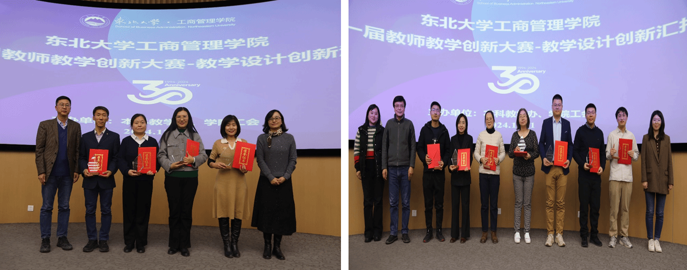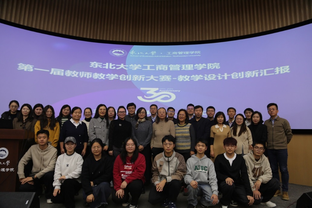 12月11日下午,工商管理学院第一届教师教学创新大赛决赛在文管学馆B450室举行。工商管理学院党委书记韩斌,副院长贾建锋,党委副书记、纪委书记王昱,副院长庞洪江,工会主席辛冲参加活动。辽宁大学国际交流处处长、省级教学名师谢名一教授,东北大学创新创业学院副院长、国家级教学名师顾晓薇教授,校工会副主席张琦教授,省教学名师郭伏教授,校教学名师张兰霞教授,校教学标兵郭德仁副教授以及学院各专业本科生代表担任大赛评委。贾建锋主持开幕式。