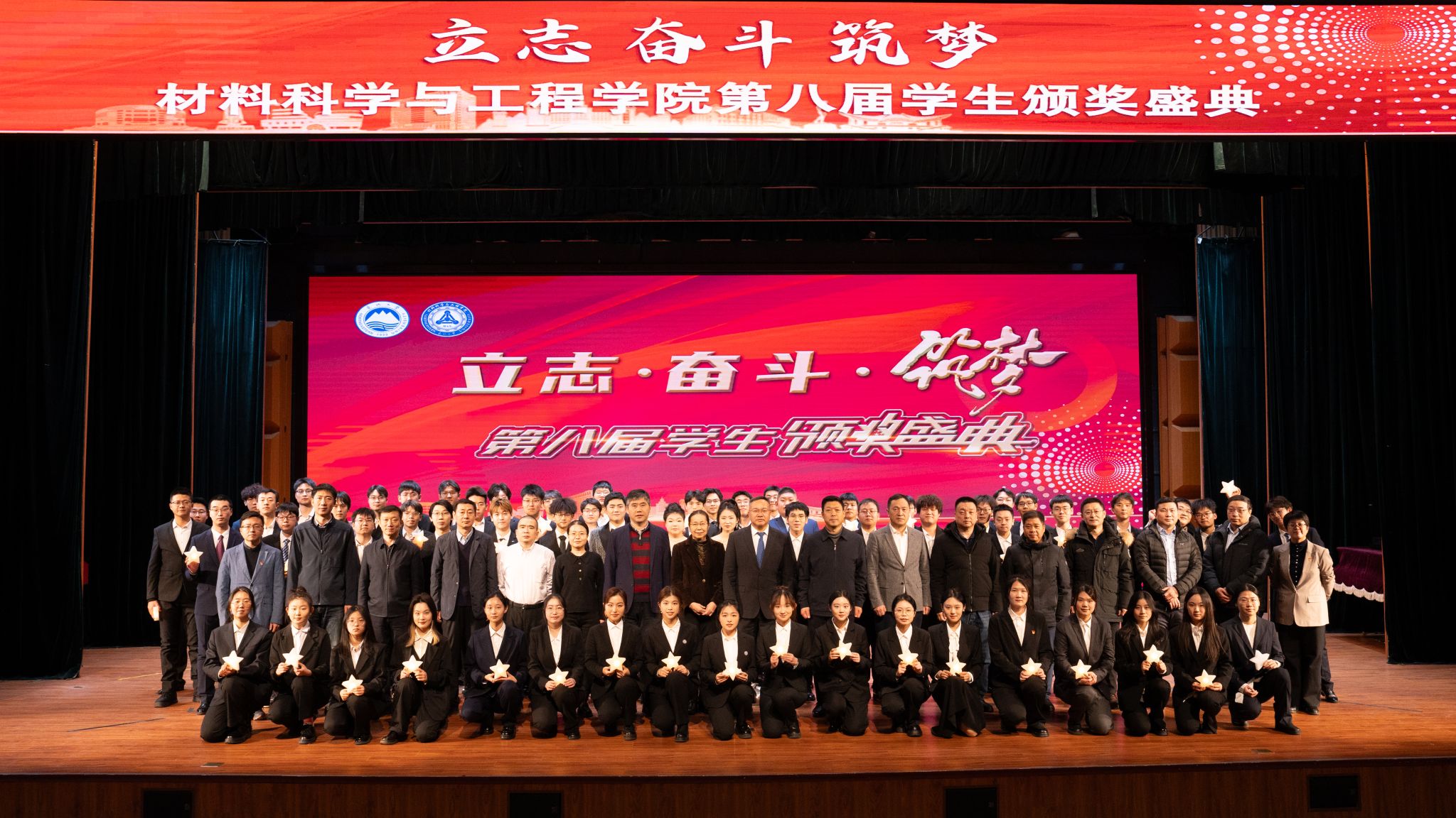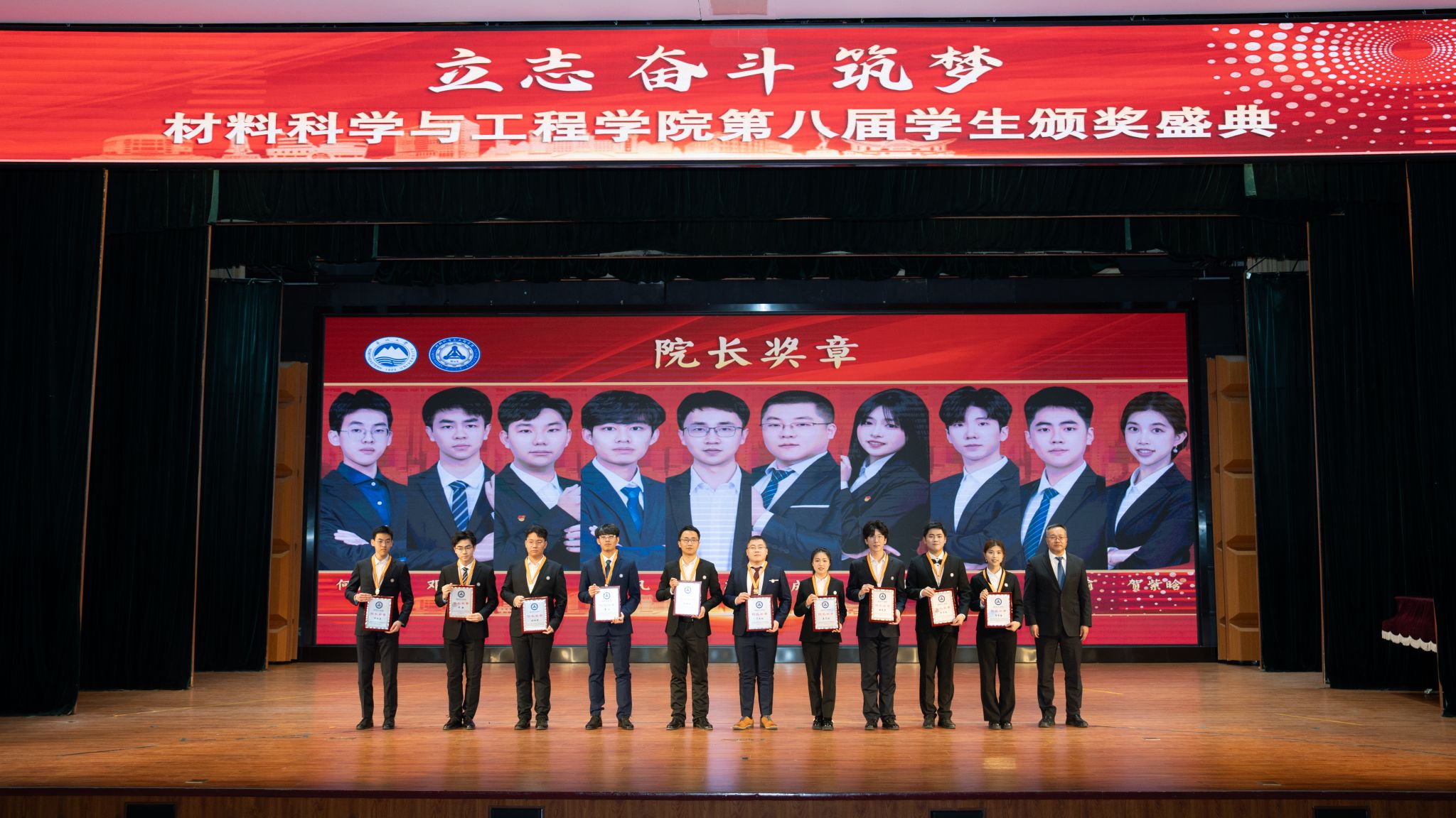 颁奖盛典分为“励志·奋进材料”“奋斗·出彩材料”“筑梦·卓越材料”三个篇章。与会嘉宾分别为获奖集体代表、学院教师及学生颁奖。