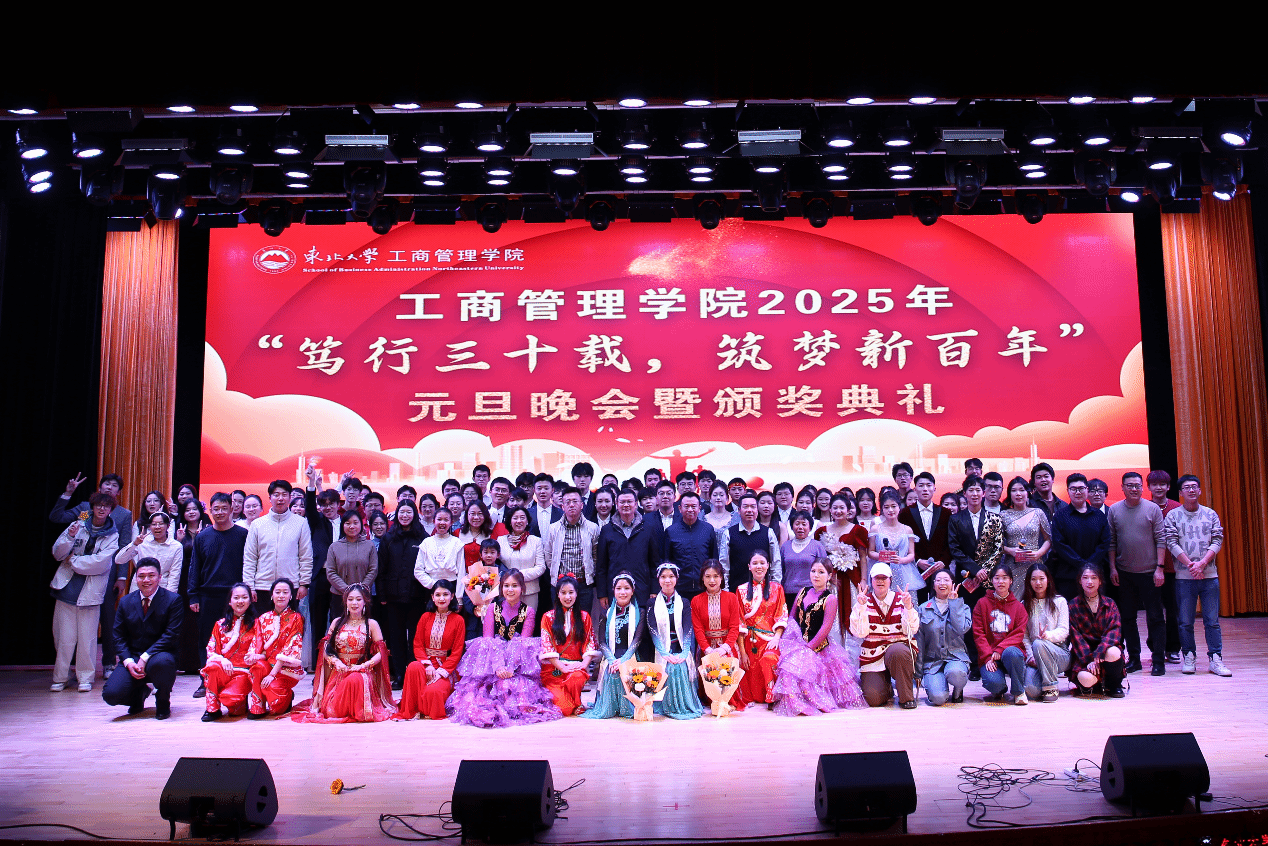 12月26日,工商管理学院2025年“笃行三十载,筑梦新百年”元旦晚会暨颁奖典礼在浑南校区图书馆泰山学术报告厅举行。学校相关部门负责人,学院领导班子成员和师生代表出席晚会。