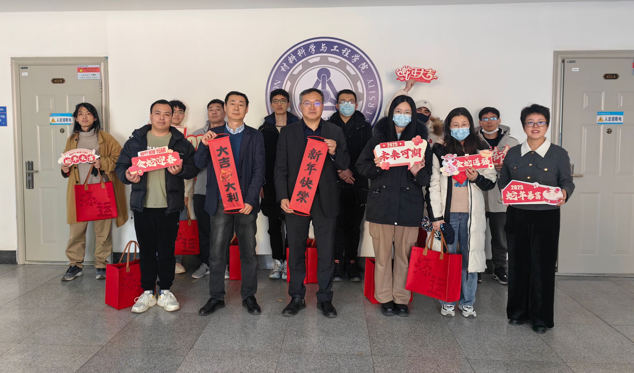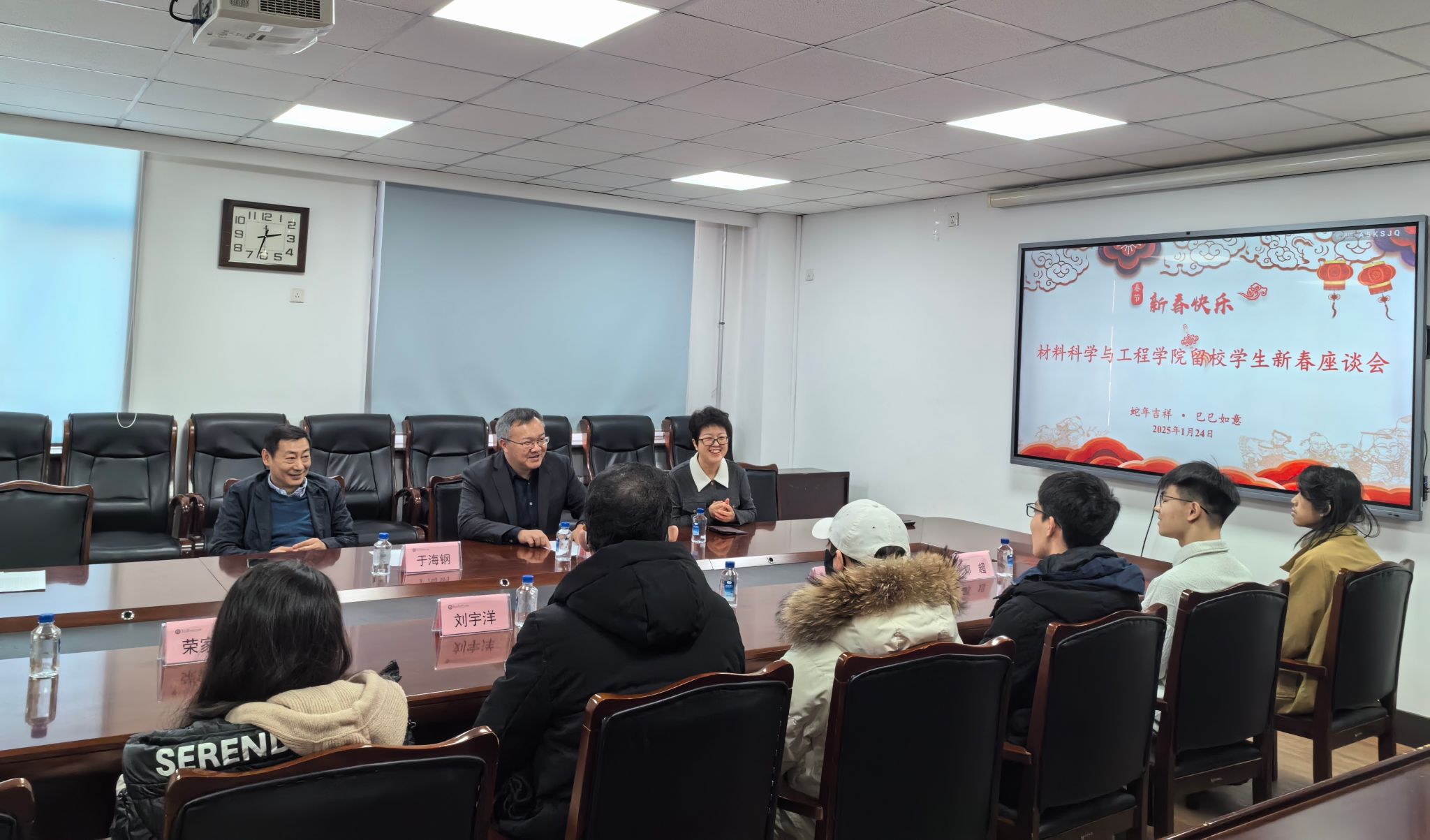 1月24日下午,新春佳节即将来临之际,材料科学与工程学院党委书记于海钢,学院院长王建军,学院党委副书记、副院长(兼)黄晓颖在知行楼424室慰问留校过年学生,向学生们致以新春问候和节日祝福。