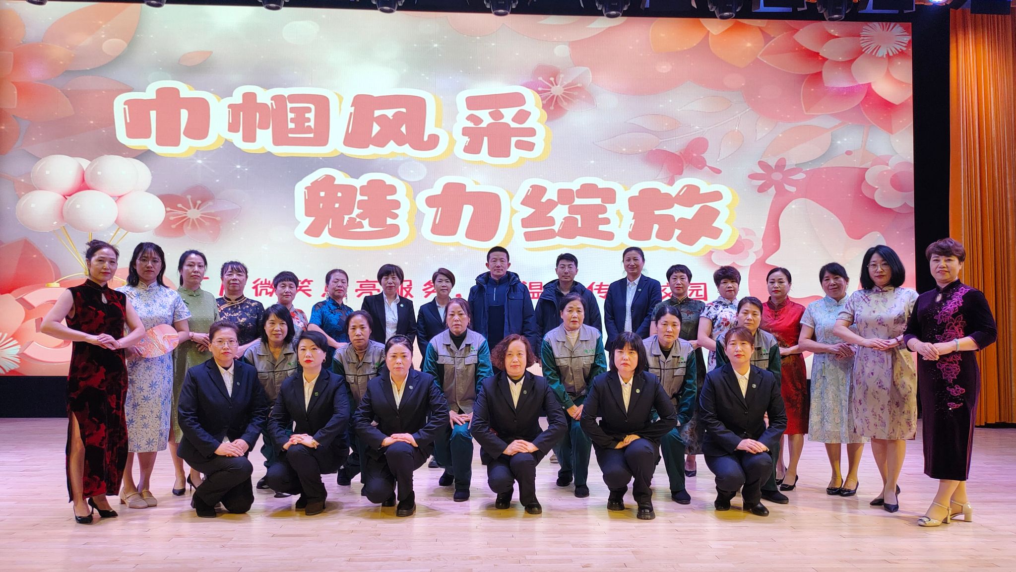 本次活动的旗袍与工装走秀和“最美笑脸”评选环节,展示了新时代职场女性的风采与精神风貌。在劳模事迹分享环节,全国教育后勤系统“2023年度最美后勤人”、沈阳市2023年苏家屯区劳动模范徐辉将自己在工作中所想、所做、受奖励后继续履职尽责的事迹进行了分享,旨在激励物业员工立足岗位,努力开展高质量服务工作,提升师生的体验感和幸福感,助力学校事业发展。