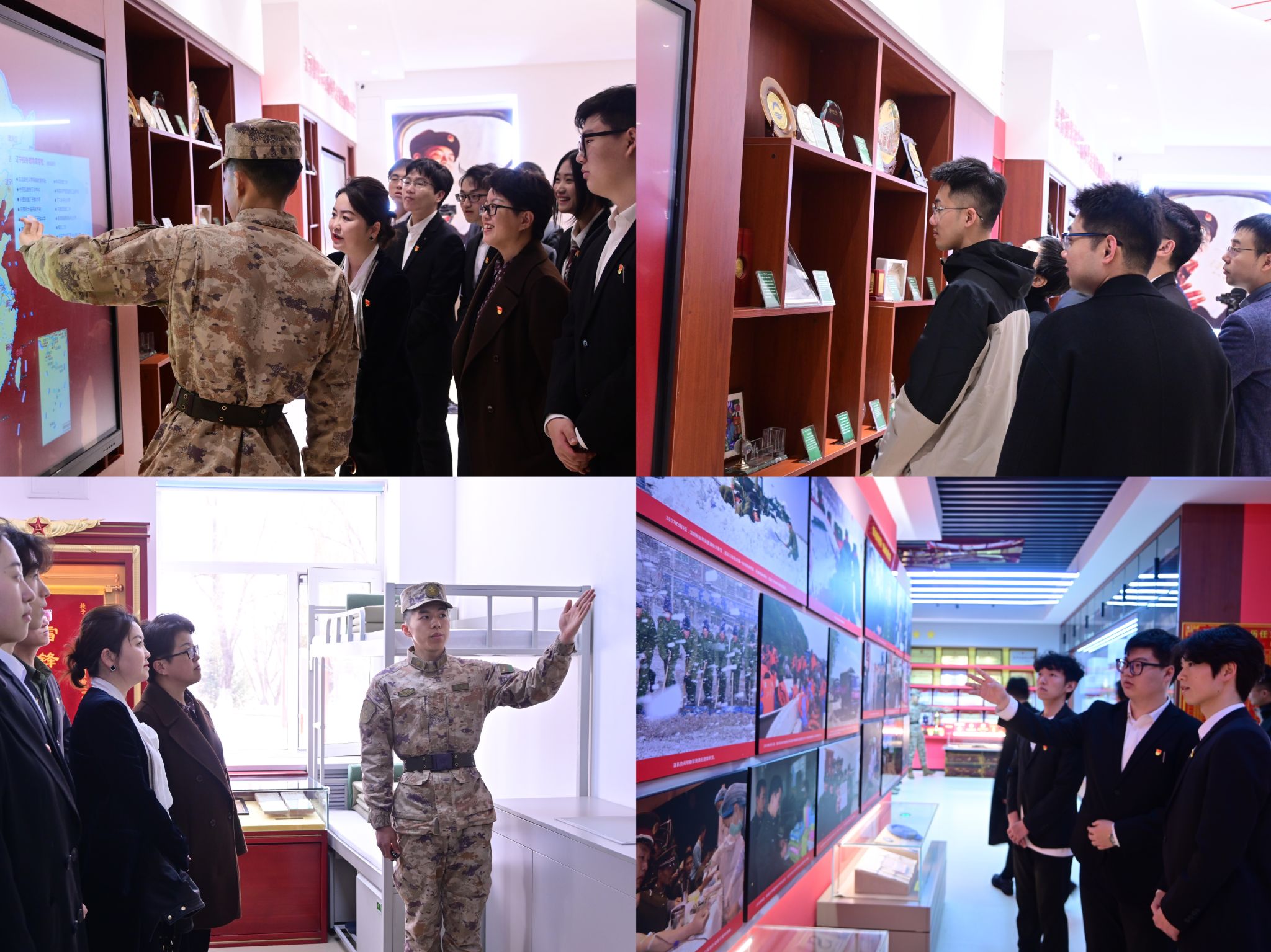 抵达雷锋旅后,雷锋班战士带领大家参观了宿舍和荣誉室。宿舍内,雷锋当年使用过的军装和被子都整齐地摆放在“雷锋铺”上,雷锋班战士介绍说:“我们一直给老班长留着床铺,班里来了新战士,住的第一个铺位就是老班长的上铺。因为那是离老班长最近的地方。”走进雷锋精神文化长廊,荣誉室里雷锋日记的真迹、展览柜上的雷锋存折、荣誉柜里绣有“雷锋班”的锦旗,让大家受到了生动直观的雷锋精神教育。