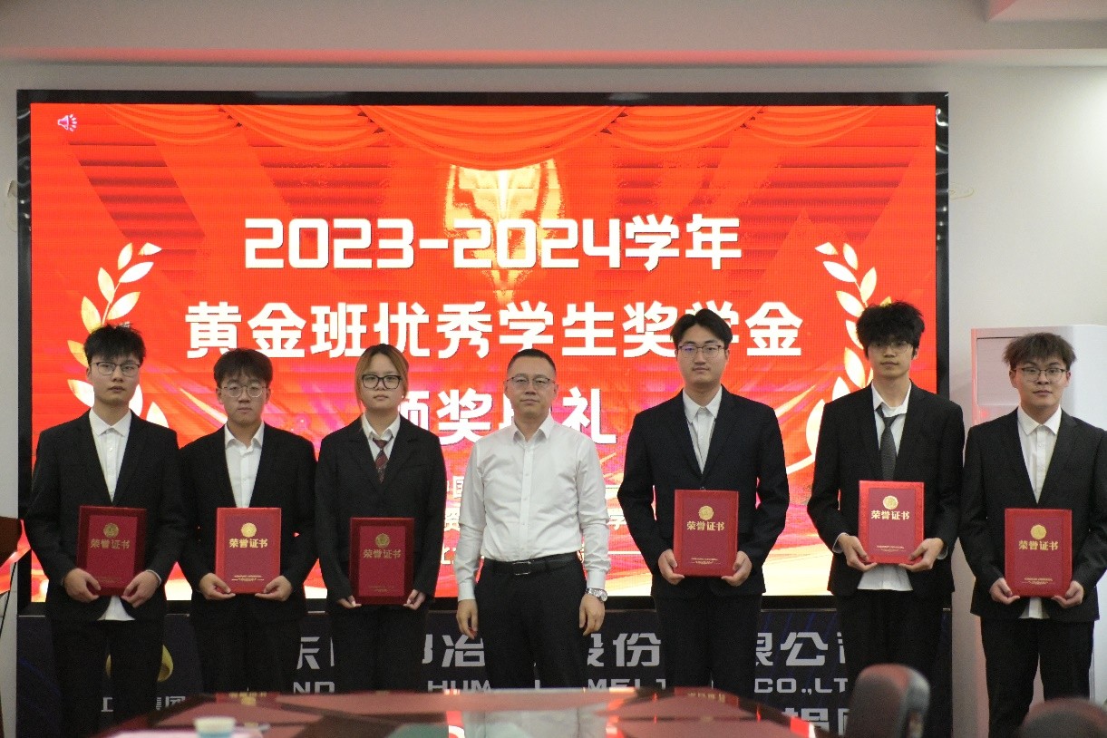 豆志河表示,中国黄金集团与东北大学自2024年联合开办东北大学黄金学院“黄金班”,是响应深化产教融合、服务国家战略的重要举措,为学生的就业成才提供了广阔的平台。同时祝贺2023—2024学年“黄金班”优秀学生奖学金的获奖同学,希望全体“黄金班”同学刻苦钻研,再攀高峰。