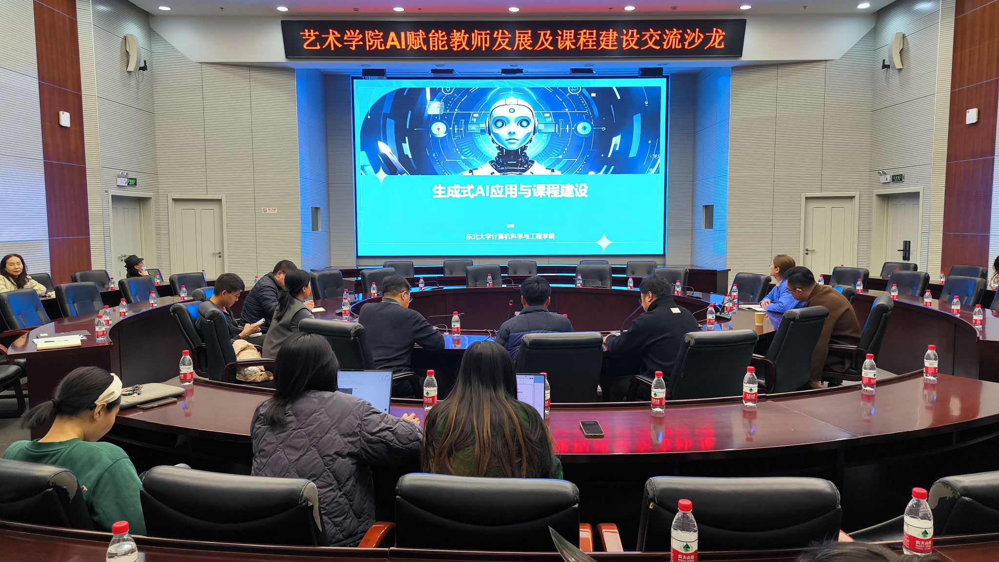3月19日下午,艺术学院在主楼824室召开AI赋能教师发展及课程建设交流沙龙。辽宁省大学计算机基础类教学指导委员会秘书长、东北大学计算机学院教师徐彬博士应邀作报告。学院党委书记安立鸿,党委副书记、副院长(兼)韩营颖以及全体教职工参加,活动由副院长霍楷主持。