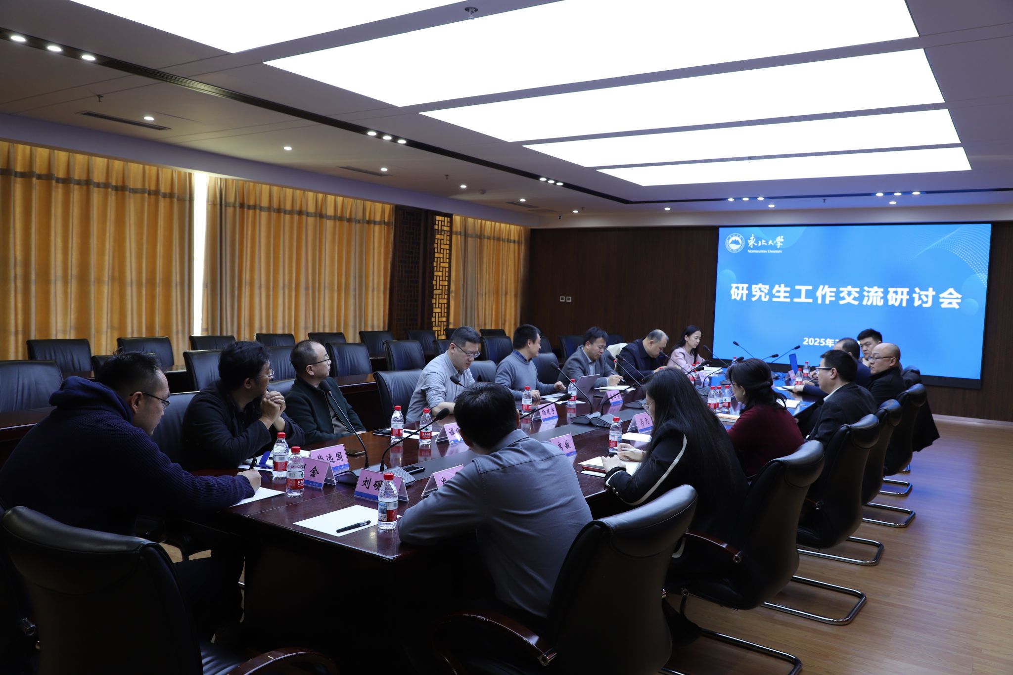 会后,在汉卿会堂308会议室,李锋亮与部分学院主管研究生培养的副院长围绕研究生教育相关问题进行了深入交流和研讨。
