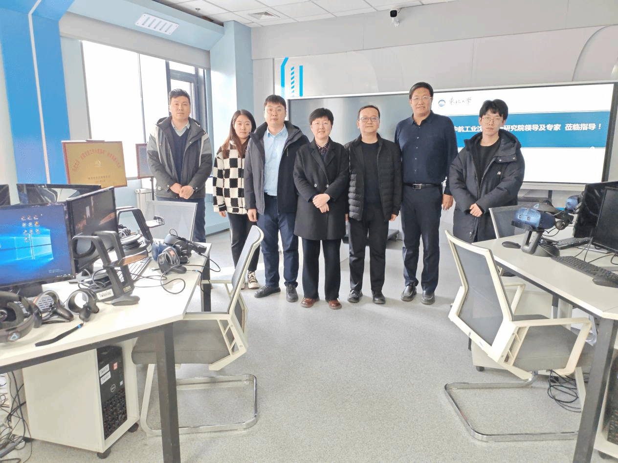 沈飞创新研究院技术中心党总支副书记刘啸飞一行在理学院党委书记李晓璐、副院长王旗陪同下,走进物理实验教学中心VR创新实验室体验VR技术在党建教育中的创新应用。通过虚拟现实技术,代表团“身临其境”地参观了线上红色教育基地,并沉浸式体验了党史重大事件的数字化还原场景。