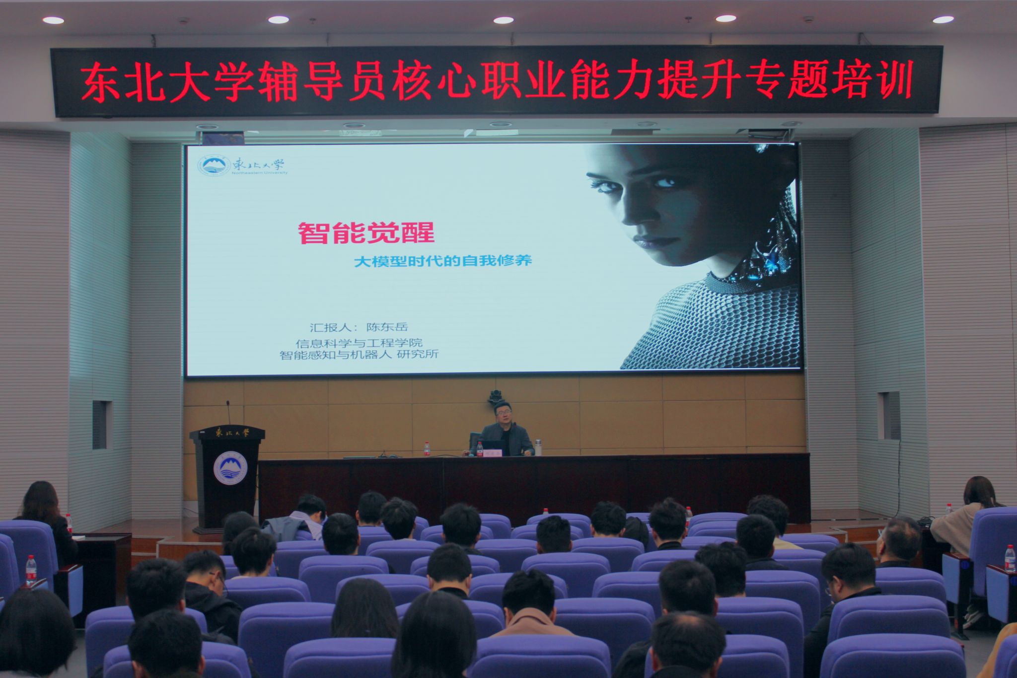 3月21日,东北大学“青年人梯”辅导员成长计划之“人工智能赋能新时代辅导员工作”专题培训在主楼822室举行。信息科学与工程学院博士生导师、人事处副处长陈东岳教授应邀为大家作题为“智能觉醒——大模型时代的自我修养”主题讲座,全体辅导员参加培训。
