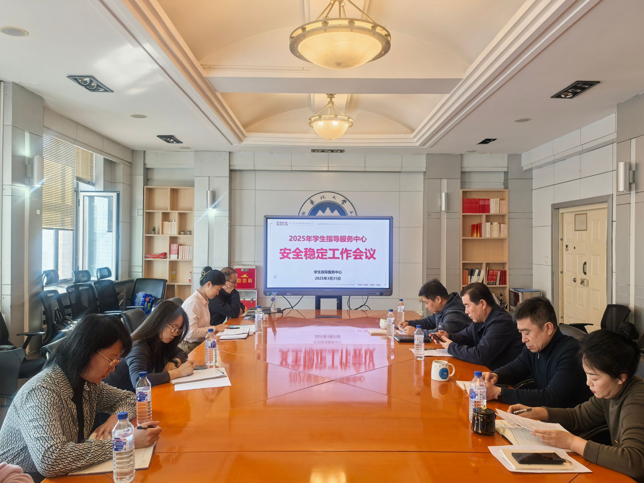 3月31日,学生指导服务中心在学生活动中心206室召开2025年度安全稳定工作会议,部门全体工作人员参会,直属部门党委书记王纯武、学生指导服务中心主任刘云飞出席会议,会议由学生指导服务中心副主任石昌远主持。