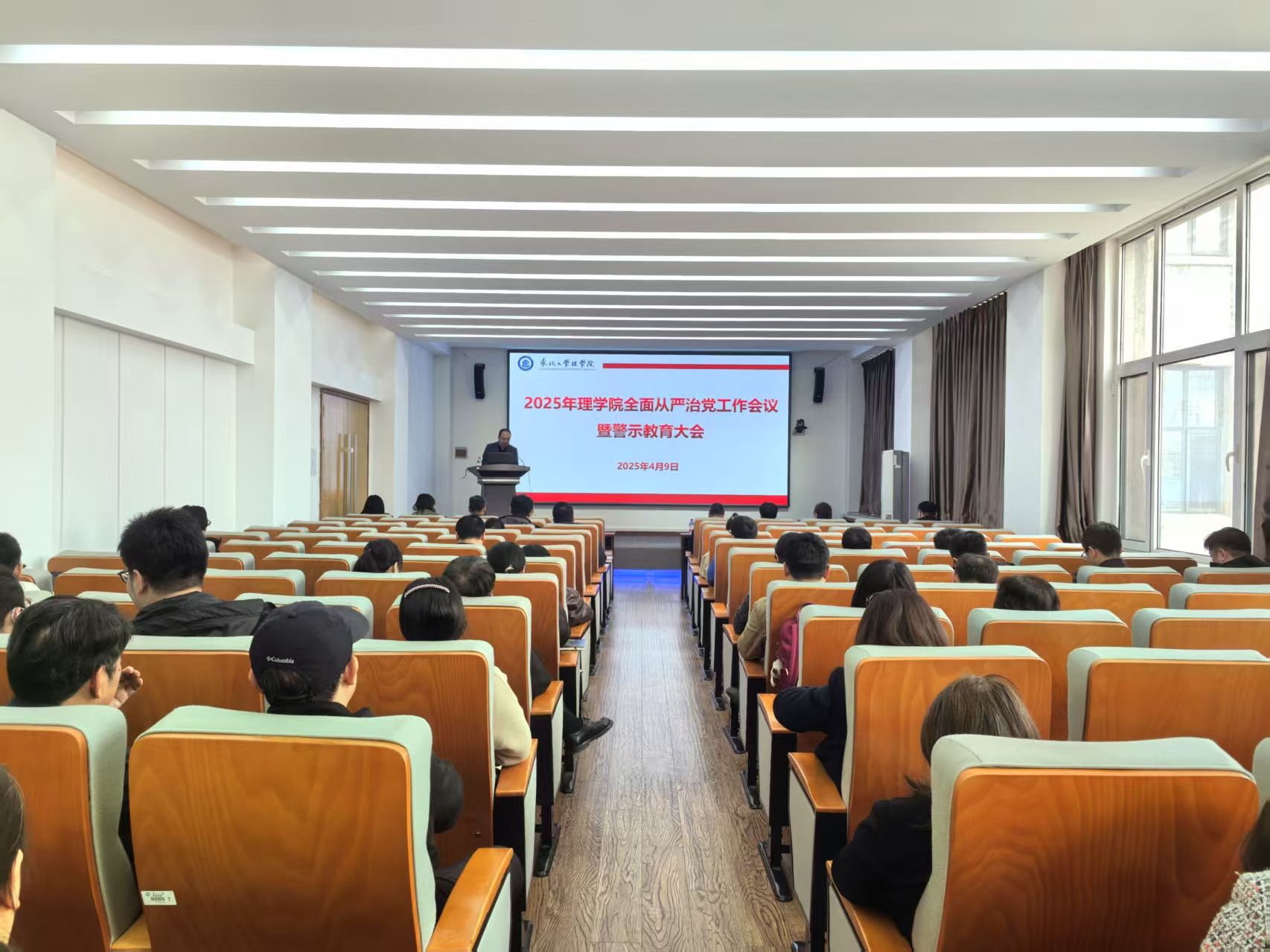 4月9日,理学院召开2025年全面从严治党工作会议暨警示教育大会,深入学习党中央、上级党组织关于全面从严治党的决策部署和学校党委相关工作要求,总结回顾2024年学院全面从严治党工作,部署今年重点工作任务。学院领导班子成员、党委委员、纪委委员、学术分委员会委员、学位分委员会委员、教学指导分委员会委员、科级干部、各系所负责人、教工党支部支委、实验中心负责人、学院科研项目负责人等出席会议。