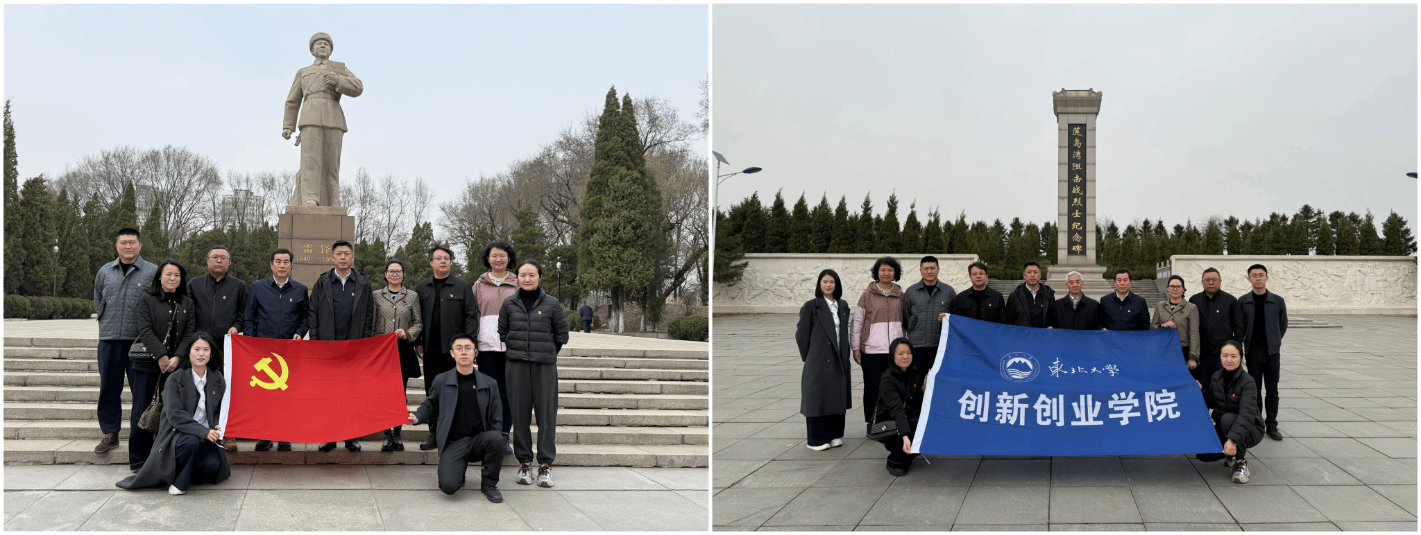 4月9日,东北大学直属部门党委与创新创业学院联合组织赴抚顺开展“寻访雷锋英雄足迹、促进产教融合发展、赓续东大爱国情怀”红色教育实践活动。直属部门党委书记王纯武,创新创业学院常务副院长李鹤,副院长顾晓薇、黄达,数字钢铁全国重点实验室副主任丛广宇,教师代表王魁汉教授、黄须强教授、创新创业学院全体员工参加了实践考察活动。