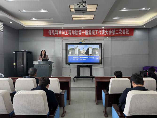 4月16日,信息科学与工程学院分工会第十届教职工代表大会第二次会议在信息学馆301室召开,信息学院党政领导班子成员及40余位工会会员代表参会。