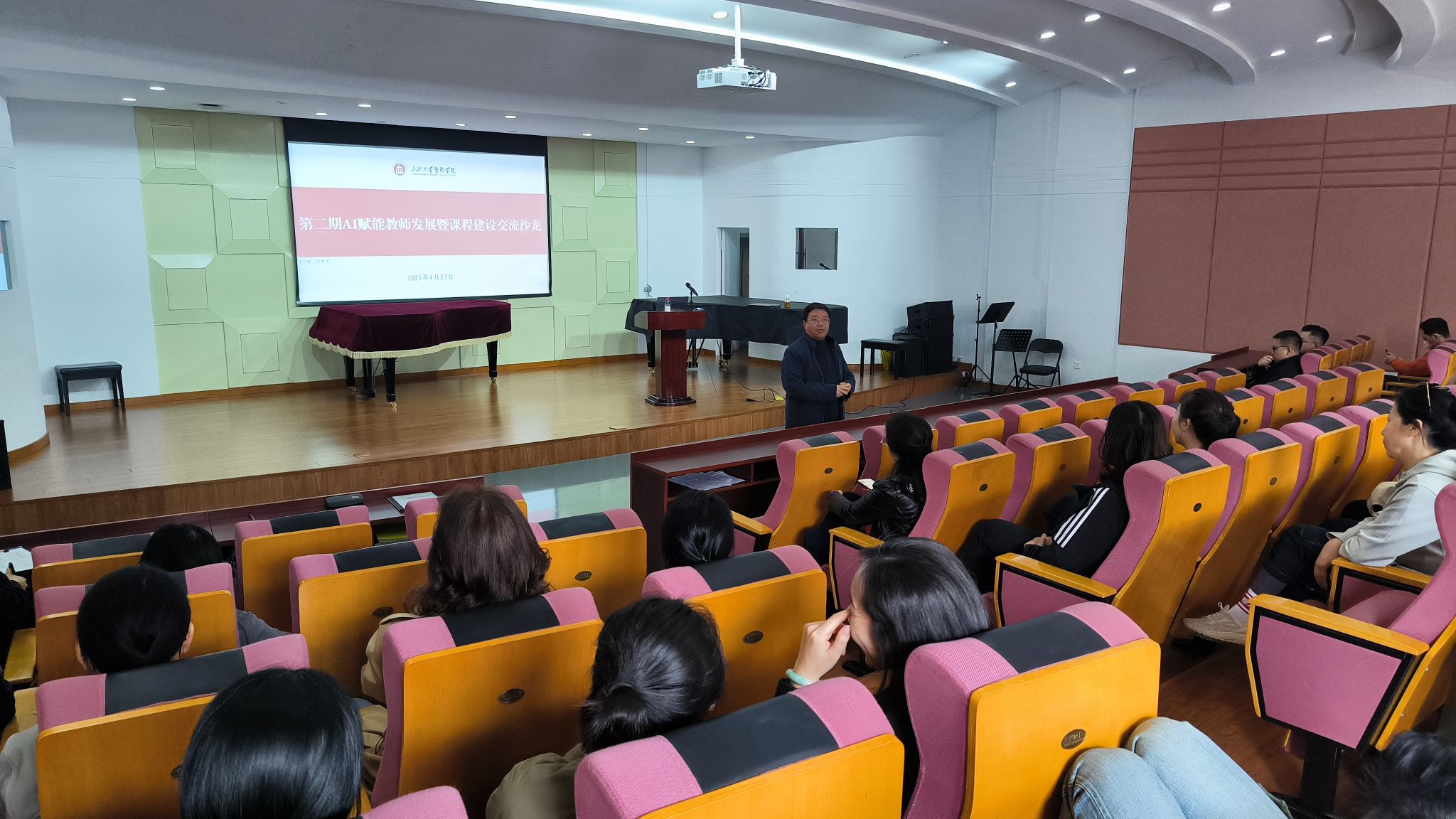 4月23日下午,艺术学院在双馨苑欣赏教室举办第二期AI赋能教师发展暨课程建设交流沙龙。本期沙龙由环境设计系单鹏宇、王玮、汤常鸣、杨小舟、孙莞五位教师作主题分享,学院党委书记安立鸿主持,全院教职工参加活动。