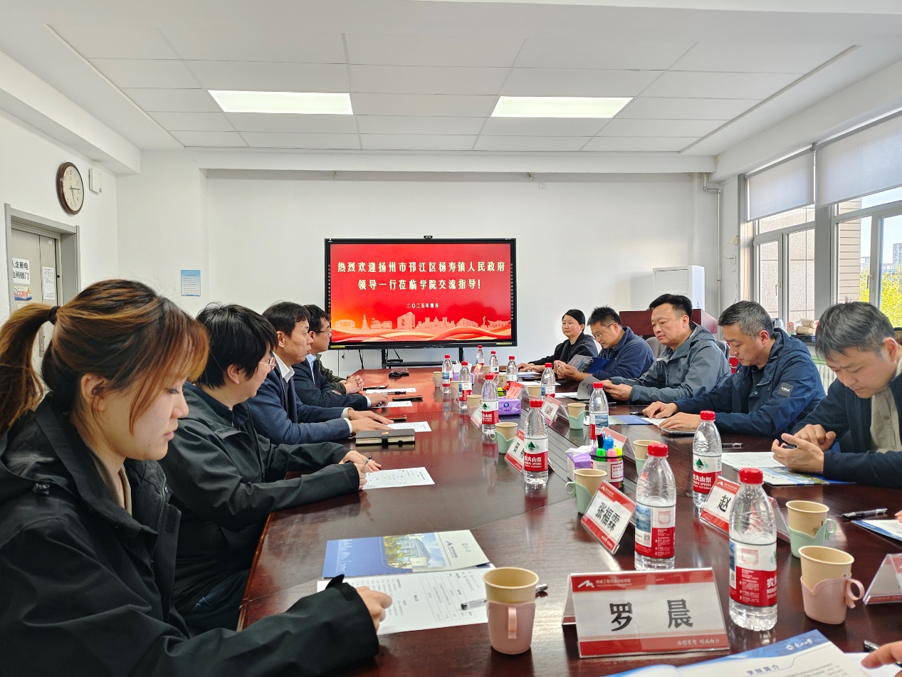4月25日,江苏省扬州市邗江区杨寿镇党委书记李晨带队一行9人来院交流。学院党委书记郝建山、执行院长于天彪、副院长田畅、液压与气动技术研究所林君哲参与交流。