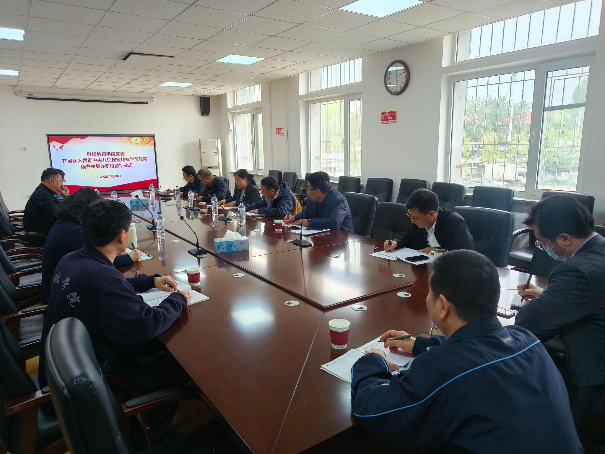 4月30日,继续教育学院党委在沈河校区教学二馆212会议室举行深入贯彻中央八项规定精神学习教育读书班集中研讨暨结业式,学院党委委员、班子成员、党支部书记参加会议,学院党委书记赵彩清主持会议。