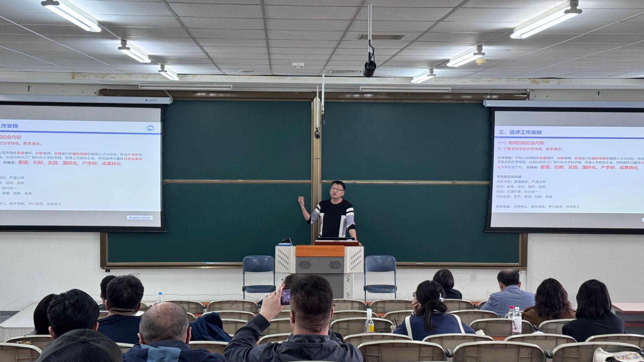 学院相关工作负责人详细解读了审核评估的指标体系、工作流程及学院迎评工作安排和要求,对下一阶段的教学档案整理、课程质量提升、学风建设等重点工作进行了部署,强调各基层教学组织要明确责任分工,细化任务节点,确保审核评估期间各项工作落实到位。