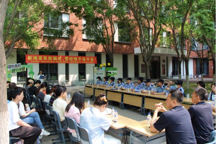 为进一步提高广大师生反诈意识和能力,有效预防和减少电信网络诈骗案件的发生,端午节到来之际,东北大学公安处联合浑南新城派出所开展“粽绳紧系防骗结,警校携手保平安”反诈宣传活动。浑南新城派出所公安民警、公安处保卫干部、龙源物业员工代表以及马克思主义学院师生代表参加活动。本次活动创新校警共建模式,以传统文化为纽带,让反诈宣传教育入脑入心,增强师生的反诈防骗意识,筑牢校园安全防线。