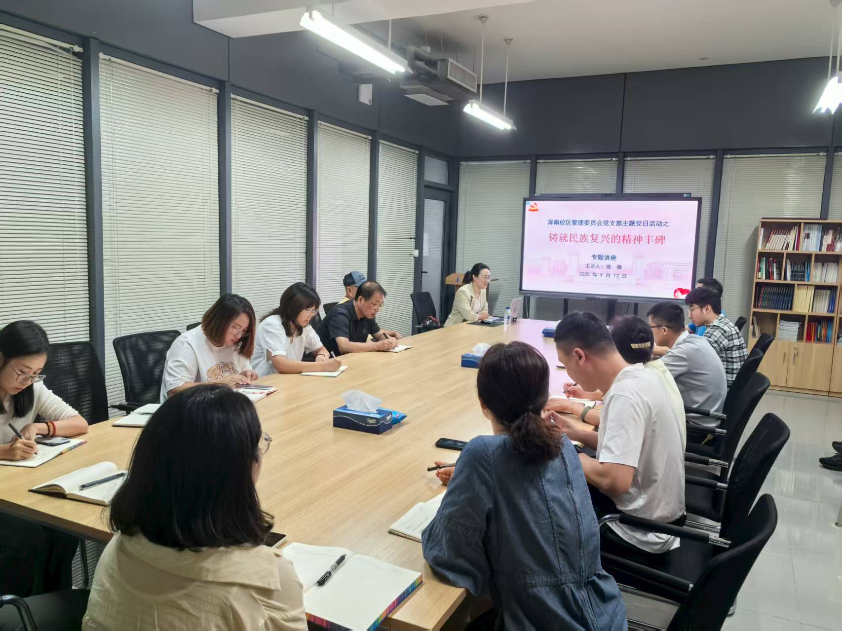 9月12日,为纪念中国人民抗日战争暨世界反法西斯战争胜利80周年,浑南校区管理委员会在浑南校区生命学馆B305室开展“传承和弘扬伟大抗战精神”学习教育活动,邀请马克思主义学院副院长曾薇作题为“铸就民族复兴的精神丰碑”的专题讲座,部门全员参加活动。