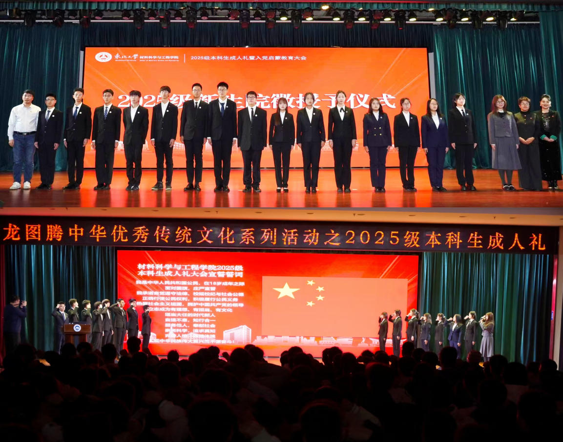 10月19日晚,材料科学与工程学院在大学生活动中心多功能厅举办2025级本科生入党启蒙教育大会暨成人礼活动。材料学院腐蚀与防护中心王福会教授,材料学院党委副书记、副院长(兼)黄晓颖,学院学生工作干部代表及全体2025级本科生参加活动。