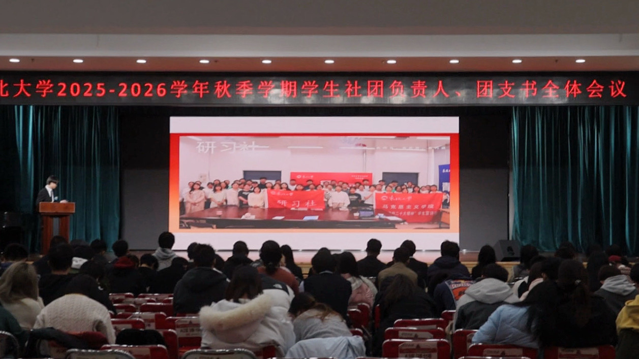 11月9日,东北大学2025—2026学年秋季学期学生社团负责人、团支书全体会议在南湖校区学生活动中心多功能厅召开,校团委相关负责同志、学生骨干以及各学生社团负责人和团支书参加了会议。