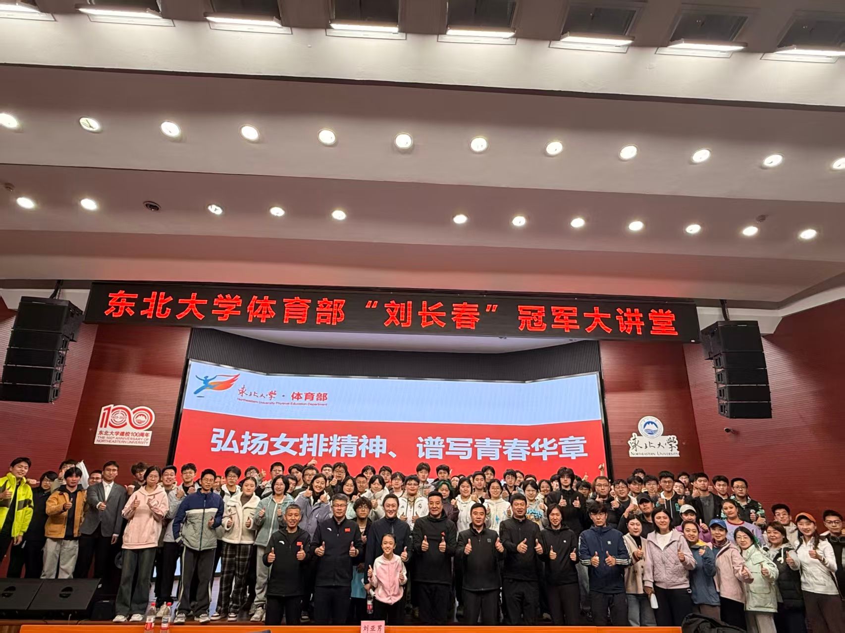 11月5日下午,东北大学体育部“刘长春”冠军大讲堂在科学馆建龙报告厅举行。本次活动以“弘扬女排精神、谱写青春华章”为主题,特邀中国女排奥运冠军刘亚男作为主讲嘉宾,与现场300余名师生共话女排精神的时代内涵与青春传承。