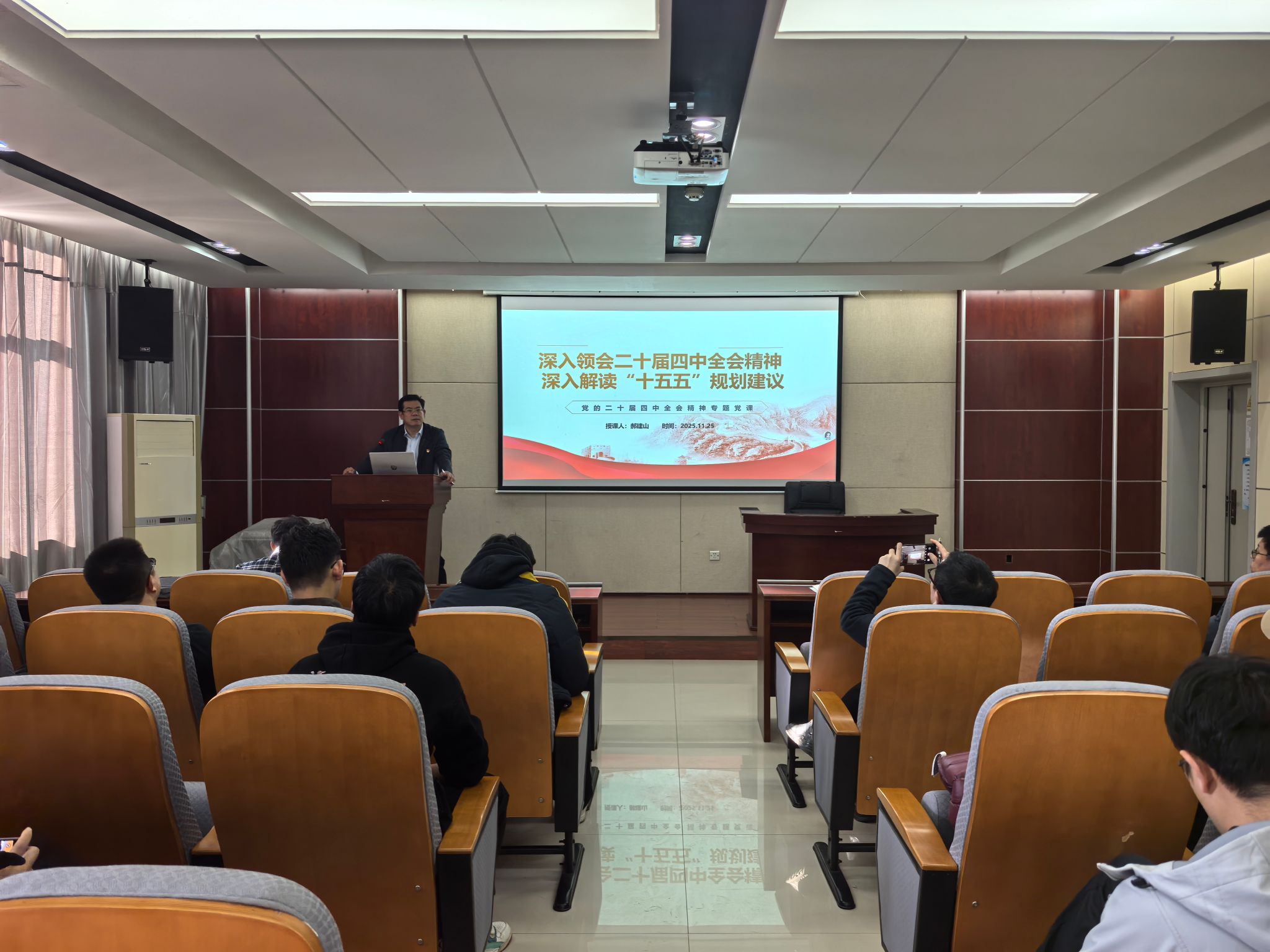 学院党委书记郝建山以“深入领会党的二十届四中全会精神 深入解读‘十五五’规划建议”为题,领学党的二十届四中全会精神。郝建山指出,“十五五”时期是基本实现社会主义现代化夯实基础、全面发力的关键时期,具有承前启后的重要地位。全会审议通过的《中共中央关于制定国民经济和社会发展第十五个五年规划的建议》,深刻阐述了“十五五”时期经济社会发展的重大意义、指导思想、重大原则、重大战略任务和根本保证,为学院科学编制“十五五”发展规划提供了科学指南和重要遵循。郝建山强调,学习贯彻党的二十届四中全会精神是当前和今后一个时期的重大政治任务,学院将建立“党委引领、支部落实、全员参与”的学习机制,把全会精神学习与“十五五”学院发展规划编制相结合,切实把全会精神转化为推动学院发展和一流学科建设的实际行动。