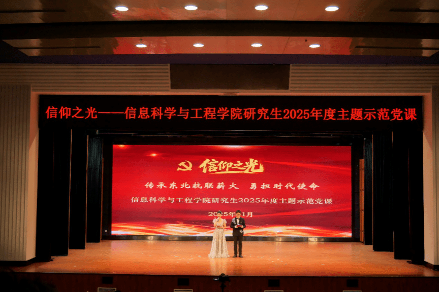 11月28日下午,信息学院在汉卿会堂报告厅举办以“信仰之光——传承东北抗联薪火 勇担时代使命”为主题的研究生年度示范党课。学校党委党校副校长周莉、宣传部副部长曹洪滔、研究生院教育管理办公室主任欧阳恒岳、校团委副书记张兆磊及信息学院党委主要负责人出席本次党课,学院全体学工干部参加党课。