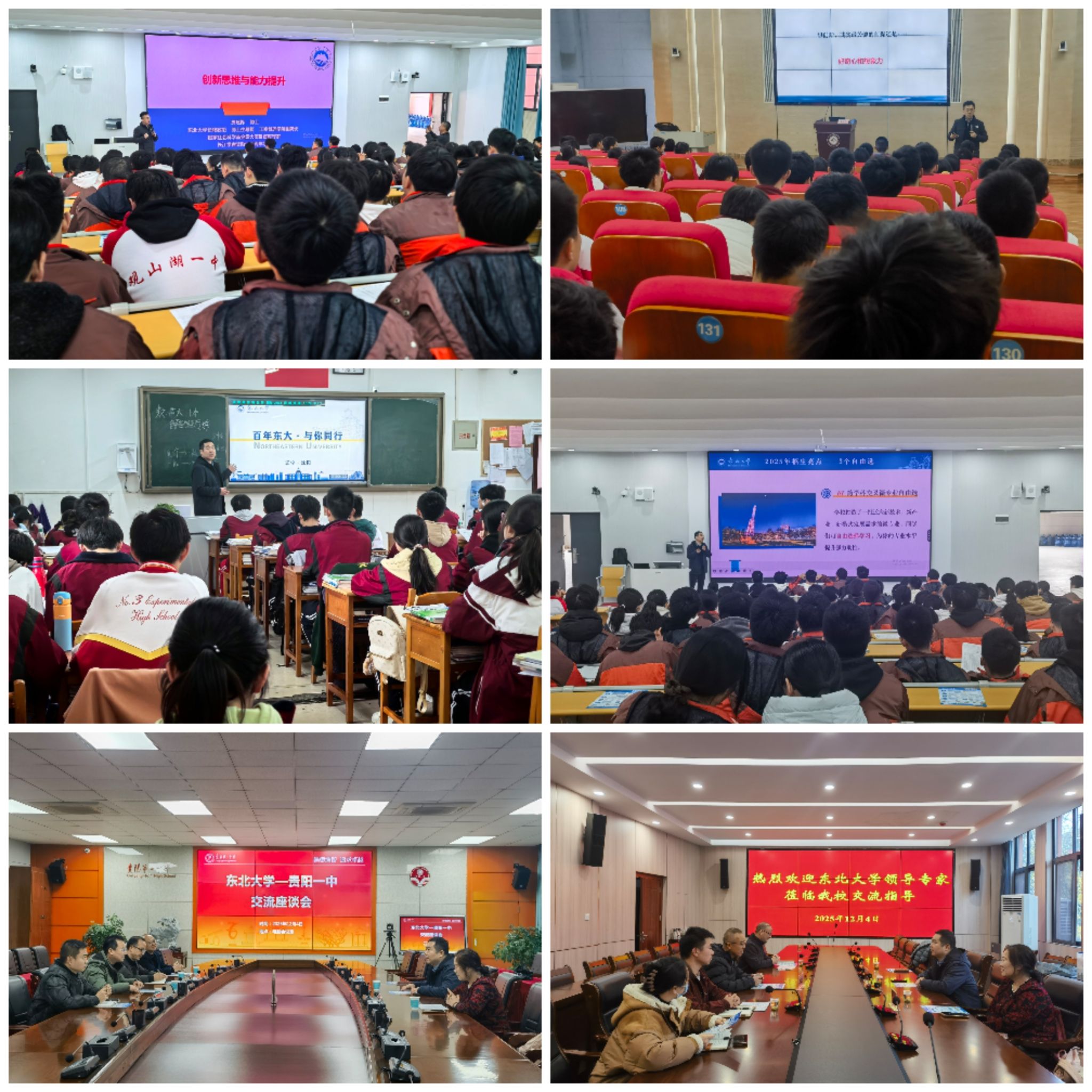 学院一行先后走进贵阳市第一高级中学、贵阳市实验三中、贵阳市清华中学及贵阳市观山湖第一高级中学,与各高中校领导举行座谈交流4场,围绕学校特色、人才培养、学科实力、专业设置等进行深入探讨,并就高中与高校衔接教育达成多项共识。各中学对东北大学主动对接、精准招生的做法表示欢迎,期待未来进一步深化合作。