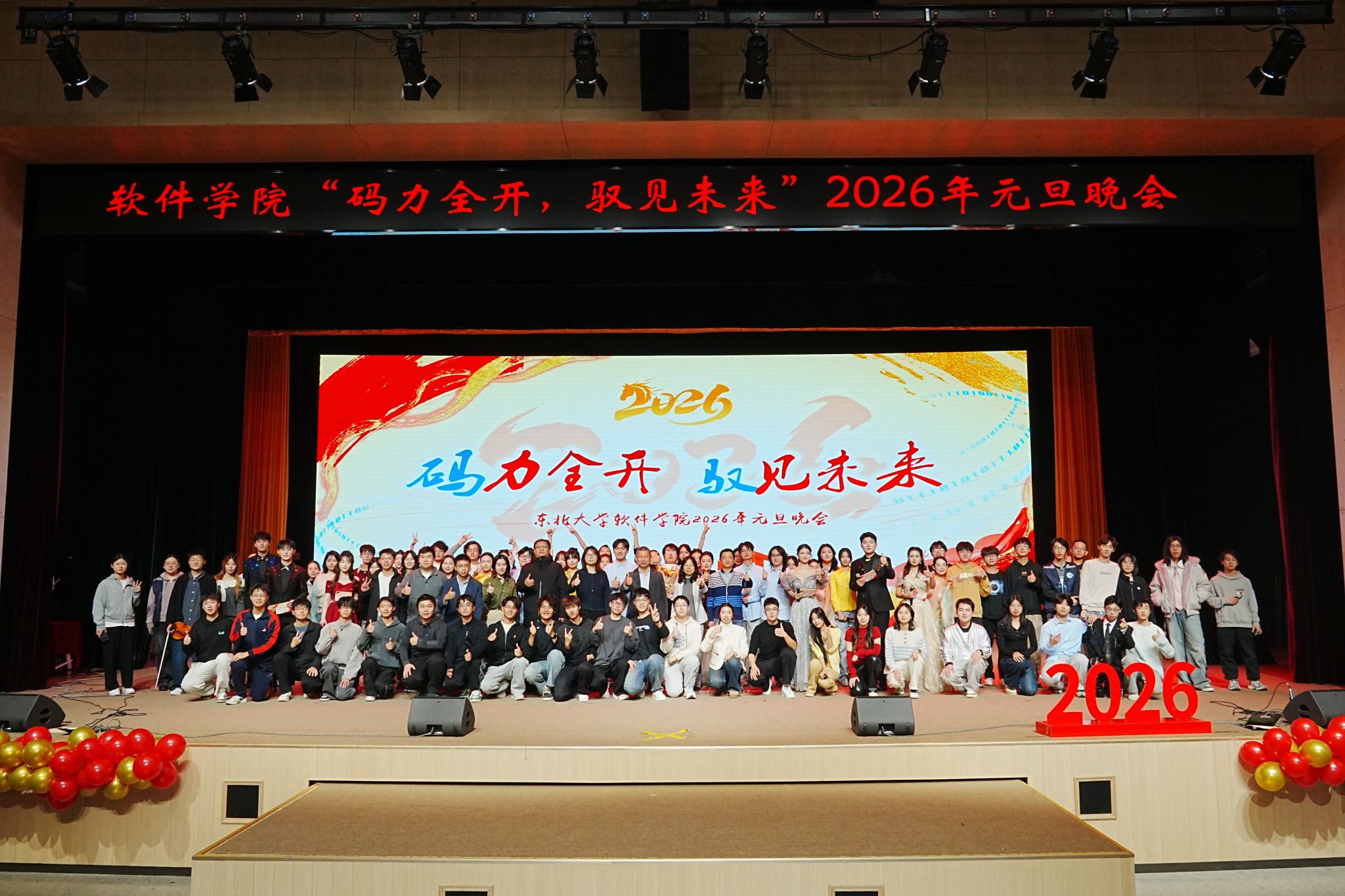 12月19日,软件学院2026年“码力全开,驭见未来”元旦晚会在浑南校区学生中心多功能厅举行。学校相关部门负责人,软件学院领导班子成员和学院师生共同观看晚会,迎接新年的到来。