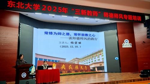 12月10日,东北大学2025年“三新教师”师德师风专题培训举行在南湖校区科学馆201建龙学术报告厅举行,新入职教职工、新认定资格博士生导师参加培训。