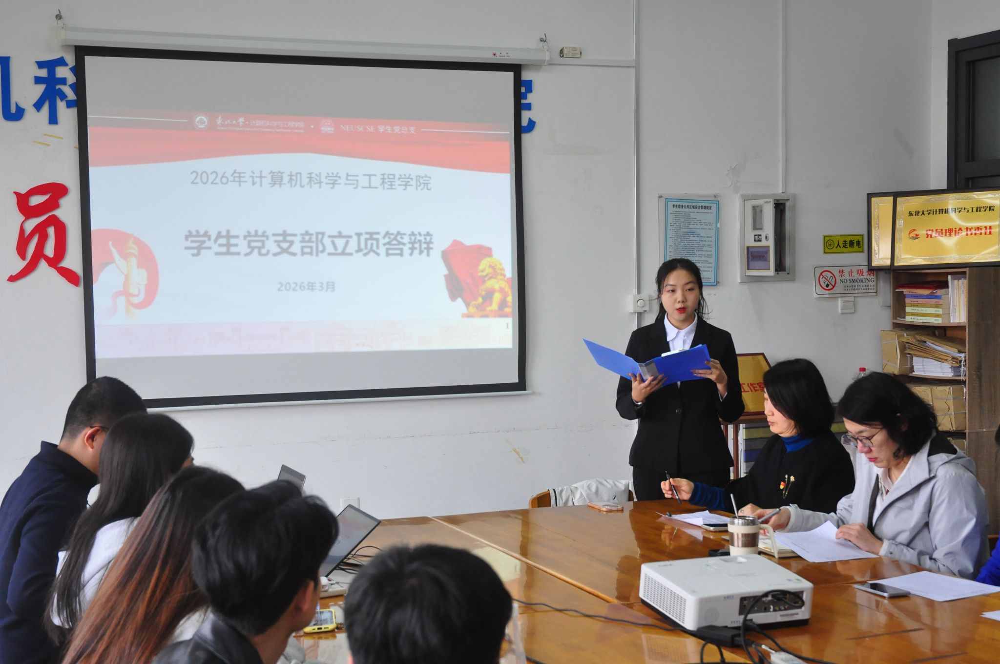 3月26日,计算机科学与工程学院学生党总支举办2026年学生党支部活动方案立项答辩会。计算机学院党委副书记、副院长(兼)梁媛,学生工作办公室全体教师出席会议并担任评委,学院本科、硕士、博士共39个学生党支部参加答辩。