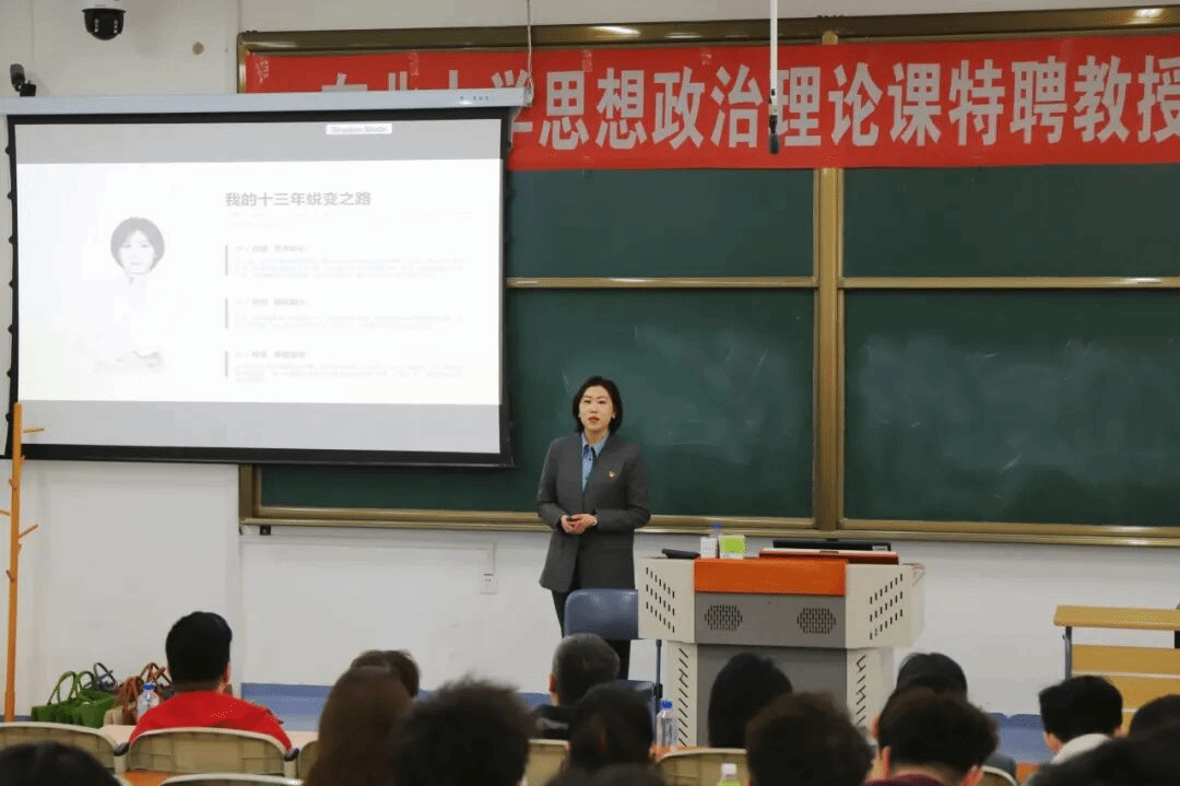 4月15日,辽宁省五一劳动奖章获得者、浑南区浑河站东街道樾檀山社区居民委员会党总支书记苏畅走进东北大学思政课课堂,以“深耕社区一线 践行初心使命 以实干实绩见证新时代伟大变革”为主题讲授思政课。