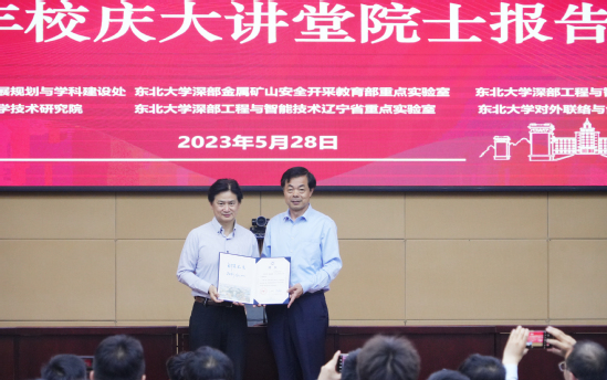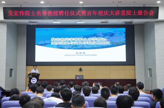 5月28日,中国香港工程科学院院士、英国皇家工程院院士、香港科技大学土木及环境工程学系讲席教授、研究生院院长兼广州校区副校长吴宏伟院士名誉教授聘任仪式暨百年校庆大讲堂院士报告会在主楼822室举行。会议由深部金属矿山安全开采教育部重点实验室等承办,中国工程院院士、东北大学校长冯夏庭出席会议,深采重点实验室相关负责人及教师学生代表、资源与土木工程学院学生代表160余人参加会议。