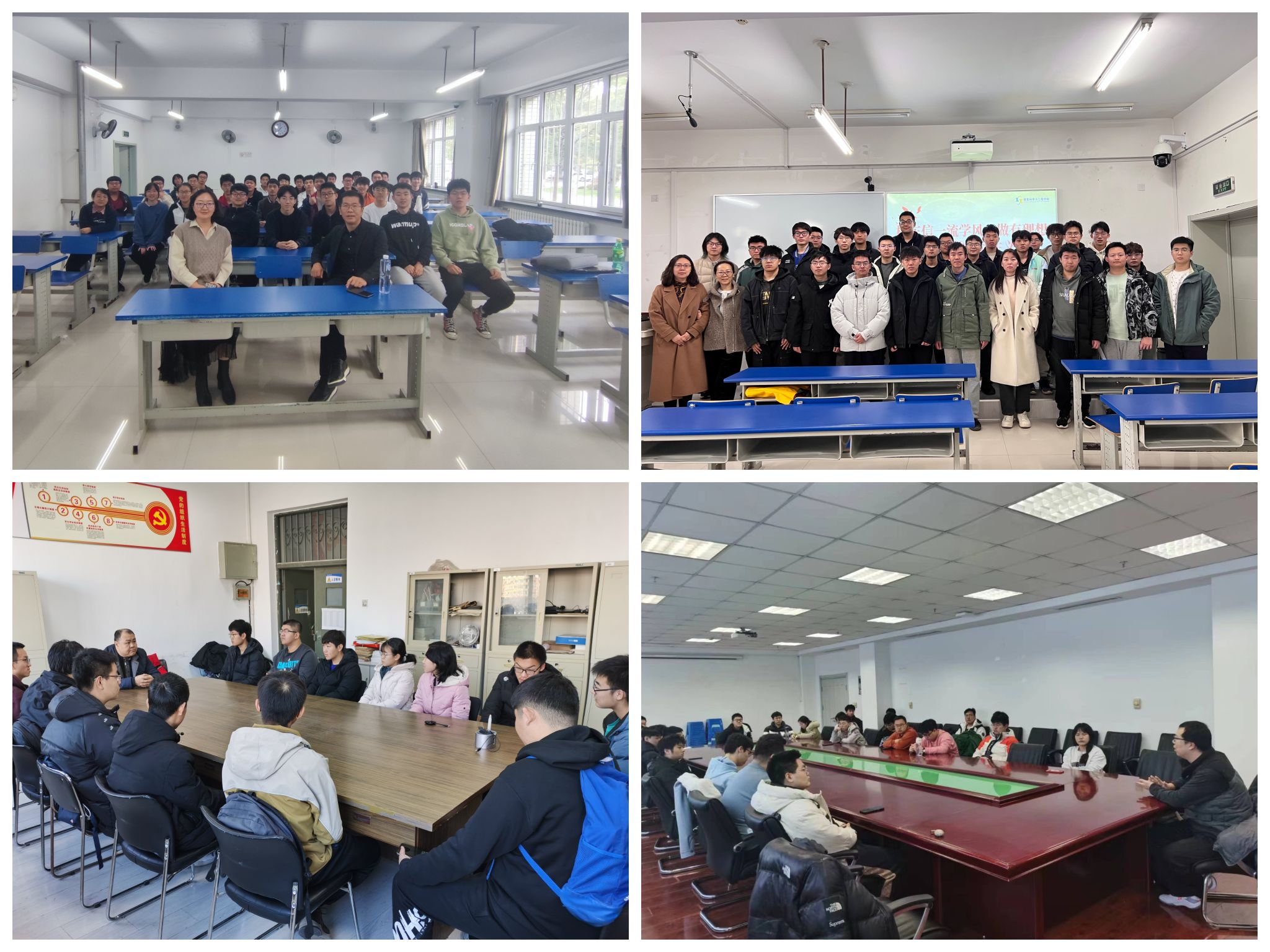 为贯彻落实习近平总书记给东北大学全体师生重要回信精神,推动“三全育人”工作深入开展,新学期伊始,信息学院组织百余名本科生班导师深入相应班级,开展“树东信一流学风,做有理想负责任的行动主义者”主题活动。通过走进一个班级、开启校园新节奏;共进一次午餐、解决成长困惑;走进一个宿舍、聆听学生心声等方式,帮助学生“解心结”“调时差”“列清单”,引导学生树立远大理想,坚定热爱祖国、学真本领的决心,激励学生在推动东北全面振兴、推进中国式现代化的进程中建功立业,作出新的更大贡献。