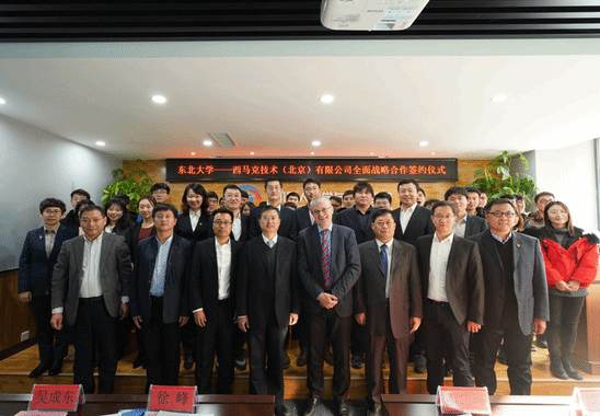 The signing ceremony of the comprehensive strategic cooperation between Northeastern University and SMS Siemag (China) was held in Hunnan campus of Northeastern University on December 11. Christoph Stappenbeck, vice president of China electrical automation department of SMS Siemag, Zhu Tong, general manager of steelmaking and concast and environmental protection technology department, Wang Xiaohua, vice general manager, Xu Feng, vice principal of Northeastern University, directors of external liaison and cooperation department, and representatives of teachers and students of the school of robotics science and engineering attended the signing ceremony.