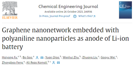Recently, NEU Professor Gao Bo's team published a paper titled "Graphene nanonetwork embedded with polyaniline nanoparticles as anode of Li-ion battery" in the Chemical Engineering Journal, proposing a simple, solvent-free method to prepare graphene nanonetwork polyaniline (PANI) nanocomposites with stronger conductivity and lithium ion storage performance. The first author of this paper is Fu Haiyang, a PhD at the School of Metallurgy at NEU, and the corresponding authors are Professor Gao Bo and Professor Ali Kamali.