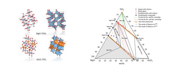 Titanium-bearing blast-furnace slag is a by-product of vanadium titanium-magnetite blast furnace smelting. As its mass fraction of titanium-oxide in blast-furnace slag is more than 20%, it is an important secondary resource. To achieve efficient extraction of titanium from slag, it is necessary to clarify the process of high-temperature crystallization and mineral phase reconstruction of titanium-containing slag. At present, however, the basic data of phase equilibrium thermodynamics related to this are extremely scarce, resulting in the lack of targeted guidance for the development of efficient titanium resource extraction technology. Therefore, in view of the melting temperature, phase equilibrium relationship, composition of solid solution, occurrence valence state of titanium components and equivalent thermodynamic properties of occurrence in the CaO-SiO2-MgO-Al2O3-TiOx-MeOy (Me=Zr, P, Cr, etc.) Ti-containing multioxide system, the research team has studied for many years. The high-temperature equilibrium phase diagram of titanium-containing slag core oxide system has been established by combining the measurement of hot wire melting and crystallization properties, high-temperature phase equilibrium experiment and calculation phase diagram, which has filled the gap in the study of phase equilibrium thermodynamics in this field. Up to now, the research team has published a number of high-level academic papers in this field, and most of the research findings have been collected by the thermodynamics software Phase Equilibria Diagrams Version 5.0 of the American Ceramic Society. To tackle key problems, the research team joined hands with enterprises. In this award-winning paper, aiming at the deficiency of thermodynamic information of titanium-rich phase equilibrium in selective precipitation and crystallization process, they established the 1600°C isothermal cross section diagram of the core titanium-containing system of MgO-Al2O3-TiO2, and clarified the formation mechanism of plate titanite and spinel solid solution. Their research has provided key basic thermodynamic data for the extraction of titanium components from titanium-containing blast-furnace slag and the development of titanium-containing ceramic products.