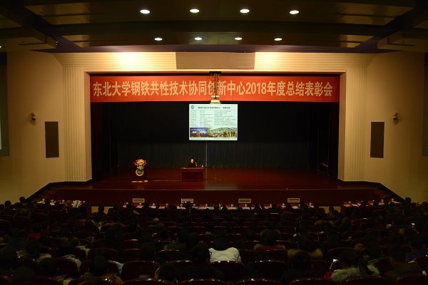 1月3日上午,东北大学钢铁共性技术协同创新中心2018年度工作总结暨表彰会在汉卿会堂蔡冠深报告厅举行。校长赵继、中国工程院院士王国栋以及相关部门负责人出席会议并为获奖集体和个人颁奖。