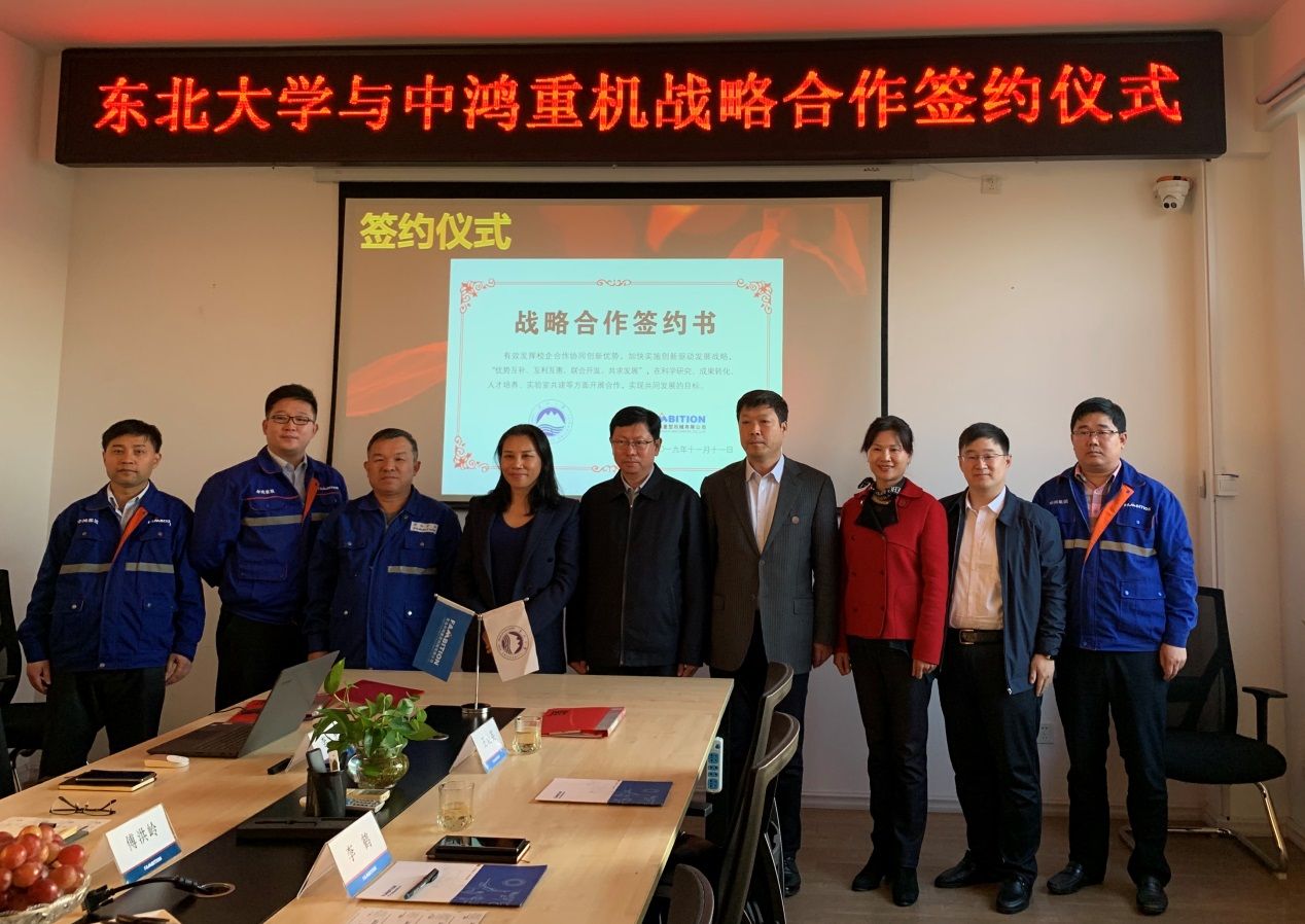 11月11日下午,东北大学与青岛中鸿重型机械有限公司全面战略合作签约仪式在青岛召开,副校长孙雷、对外联络与合作处相关负责人出席签约仪式并看望校友。