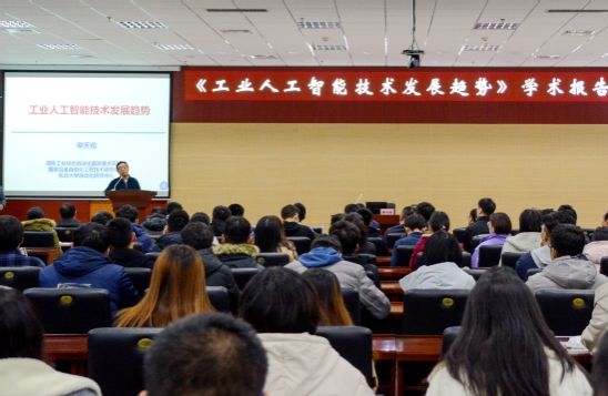 当日下午,柴天佑在人文楼728室以“工业人工智能技术发展趋势”为题为分校师生作学术报告。柴天佑从“智能制造”“挑战的难题”“人工智能与自动化”“工业人工智能”四个方面着手,通过分析离散工业与过程工业的不同特点与发展目标,阐述了以德国工业4.0为代表的智能制造的发展愿景和以实现流程工业高效化与绿色化为目标的流程工业智能优化制造的内涵,指出了智能制造中的挑战问题。柴天佑希望,与会师生通过本次讲座能够充分理解“智慧制造”的意义,在日后的科学研究、个人成长等方面学会运用“智慧”思维,转变思想,改革创新。