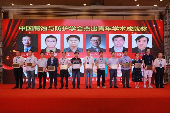 中国腐蚀与防护学会杰出青年学术成就奖用以表彰在腐蚀与防护领域做出突出成绩的青年科技人才,王永欣、卢小鹏、朱敏、孙立东、孙晓光、李向红、张博威、杨延格、钟显康、崔中雨、常雪婷、程玉贤等12位青年专家获得该奖项。学会荣誉理事长左禹教授为获奖者颁奖。