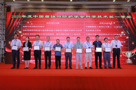 本次大会还向腐蚀与防护领域科技成果获奖项目颁发了2020年度“中国腐蚀与防护学会科学技术奖”,经国内同行专家函评、会议评审,共评审出学会科学技术奖56项,其中一等奖20项、二等奖31项、三等奖5项。共有131个高等院校、科研单位、企业单位的525名腐蚀与防护领域科技工作者获得荣誉称号。这些项目已在国家重点工程、国防工业等经济建设的主战场中发挥出了巨大的经济效益和社会效益。