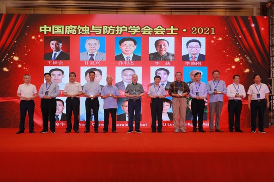 中国腐蚀与防护学会自2019年设立会士制,以表彰在腐蚀与防护科学技术领域方面取得突出成绩,同时为中国腐蚀与防护学会发展作出重要贡献的杰出会员,学会会士群体是学会最高智囊机构,代表着我国腐蚀与防护领域的最高水平。依据学会章程和会士制度,本次大会王福会、甘复兴、乔利杰、李劲、李晓刚、刘建华、林安、郭兴蓬、宫声凯、萧以德、董俊华等11位会员获得了中国腐蚀与防护学会会士荣誉称号,Frank Cheng、Gerald Frankel、Jing-li Luo、Philippe Marcus等4位国外卓越专家获得了中国腐蚀与防护学会会士(外籍)荣誉称号。侯保荣院士为本届会士获得者授予荣誉称号。