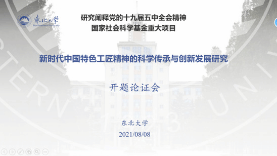 8月8日上午,由东北大学马克思主义学院教授陈凡担任首席专家的研究阐释党的十九届五中全会精神国家社科基金重大项目“新时代中国特色工匠精神的科学传承与创新发展研究”开题论证会在腾讯会议线上召开。辽宁省社会科学联合会副主席金虎、辽宁省社会科学规划办公室主任肖明江、东北大学副校长孙雷,以及中国社会科学杂志社副总编辑李红岩教授、中国企业改革与发展研究院院长高闯教授、中国科学院哲学研究所学术委员会副主任胡志强教授、上海社会科学院哲学研究所副所长成素梅教授、山西大学科技哲学研究中心副主任殷杰教授、中国社会科学院科学技术与社会研究中心主任段伟文教授,以及课题组成员共40余人参加了线上会议。