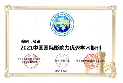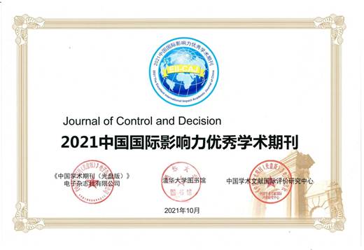 12月6日,由中国期刊协会、中国科学技术期刊编辑学会、中国高校科技期刊研究会、全国高等学校文科学报研究会、《中国学术期刊(光盘版)》电子杂志社有限公司共同主办的以“高品质、高水平、高质量――推动学术期刊繁荣发展”为主题的“2021中国学术期刊未来论坛”线上开幕。会上发布了“科技期刊世界影响力指数WJCI-2021”和2021年“中国最具国际影响力学术期刊”和“中国国际影响力优秀学术期刊”名单。由我校主办的《控制与决策》及Journal of Control and Decision(JCD)两刊双双入选“2021中国国际影响力优秀期刊”。